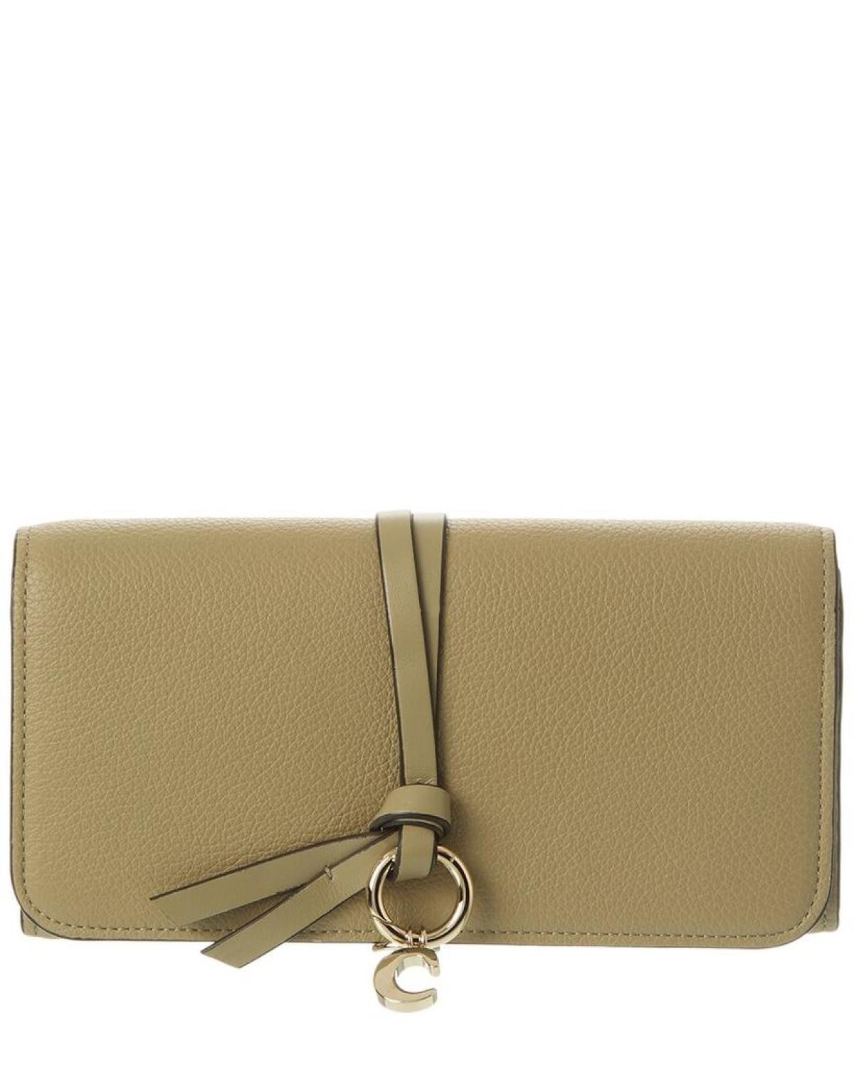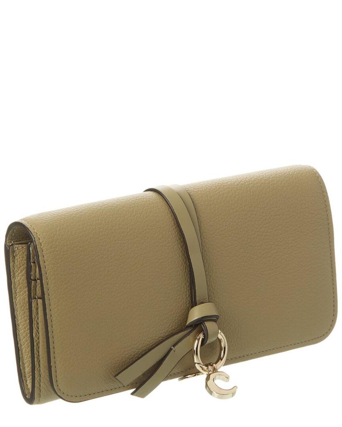 Elevate your everyday essentials with the Chloé Alphabet Leather Continental Wallet. This luxurious wallet is crafted in Italy from green leather and adorned with gold-tone hardware, featuring a convenient exterior pocket and logo charms. The interior showcases a blend of leather and fabric lining, along with multiple pockets, card slots, and a bill compartment for easy organization. Measuring 7.5 inches wide by 4 inches high by 1 inch deep, this wallet is designed with a fold-over flap and snap closure for added security. Embrace Chloé's signature romantic, cool, and glamorous style with this timeless accessory that is sure to make a statement. Please note that slight variations may occur in measurements, and rest assured that all products on our site are 100% genuine, sourced from trusted independent suppliers.