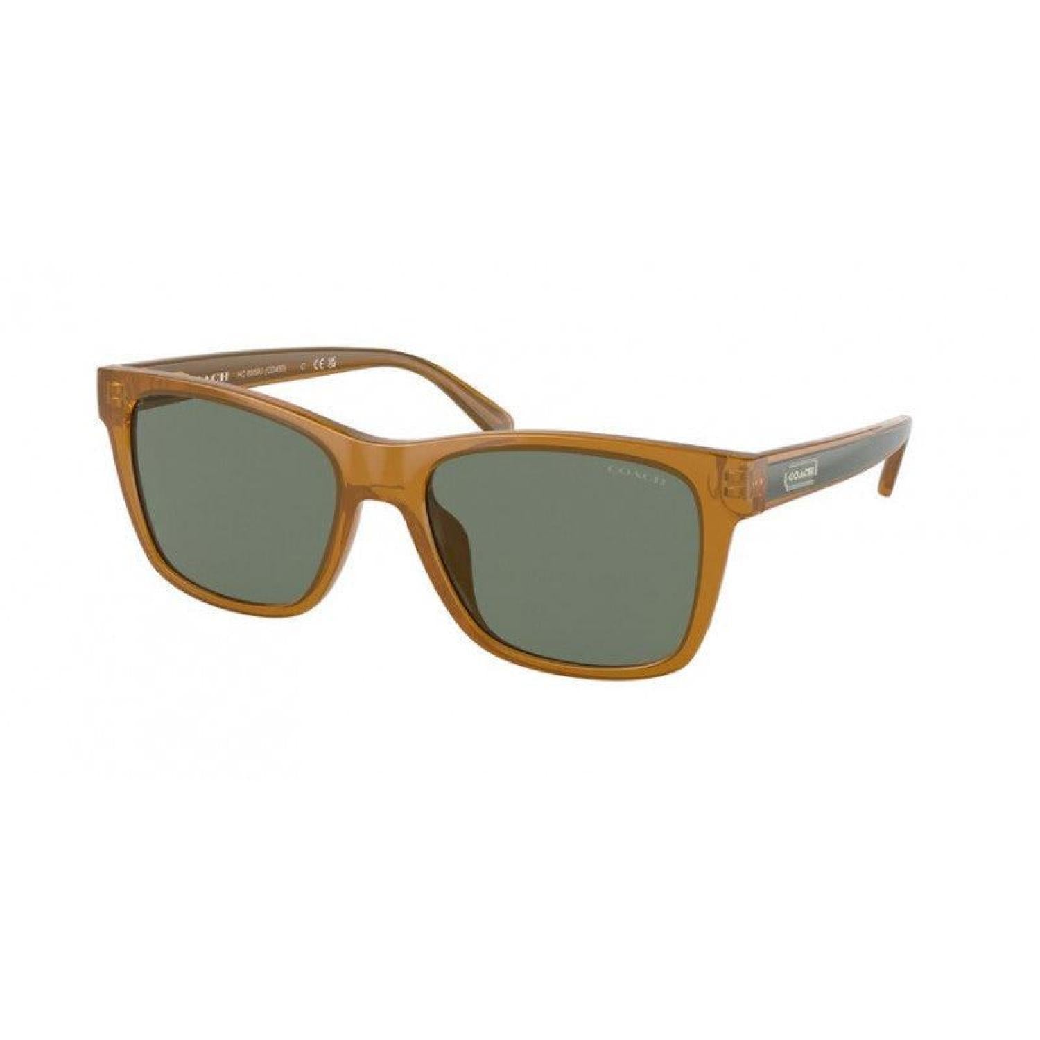 Coach Men's Sunglasses. Dimensions - 56 mm x 18 mm x 145 mm. Milky Amber Square Plastic frame, Green Solid lenses. 100% UV Protection, Non-Polarized. Made in China. (HC8359U-52513H-56)