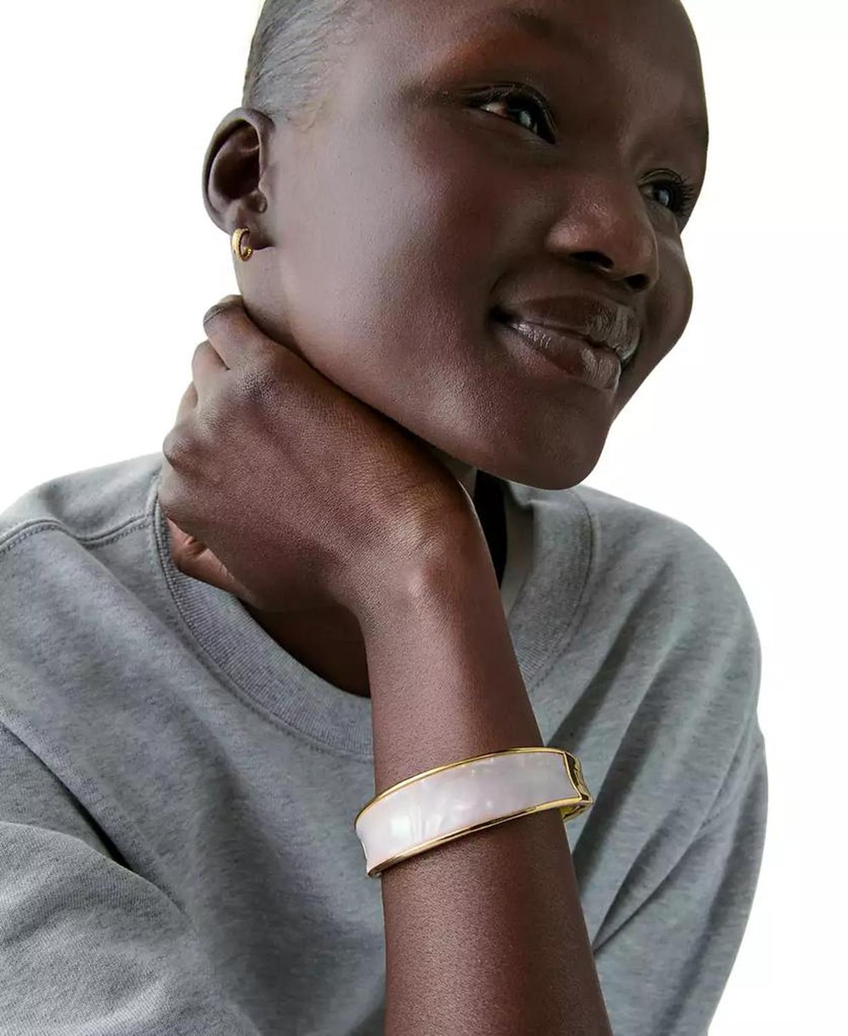 • Wear a bold accessory with this BOLD bangle from kate spade new york, featuring cubic zirconia and acetate. A hinge with a push-clasp ensures easy wear and a secure fit on your wrist. The dramatic design makes a confident statement for any occasion.
