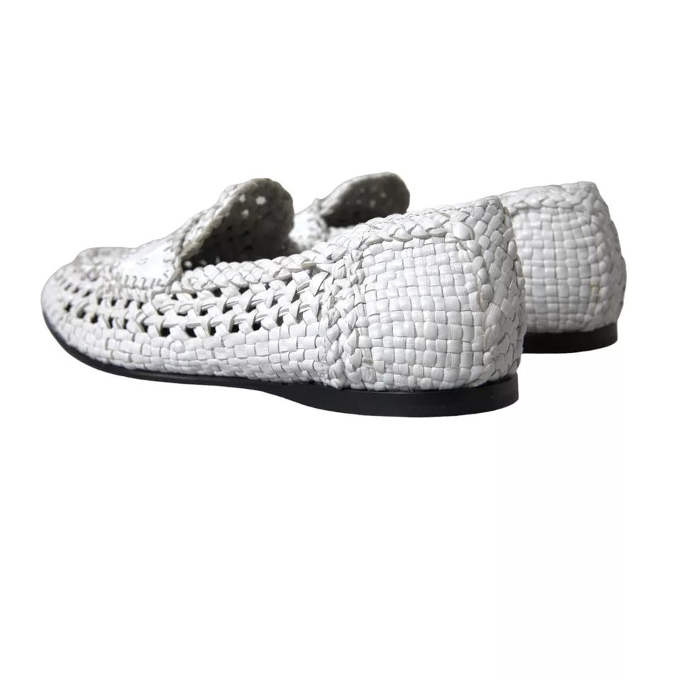 Dolce & Gabbana White Woven Leather Men Slip On Loafers Shoes