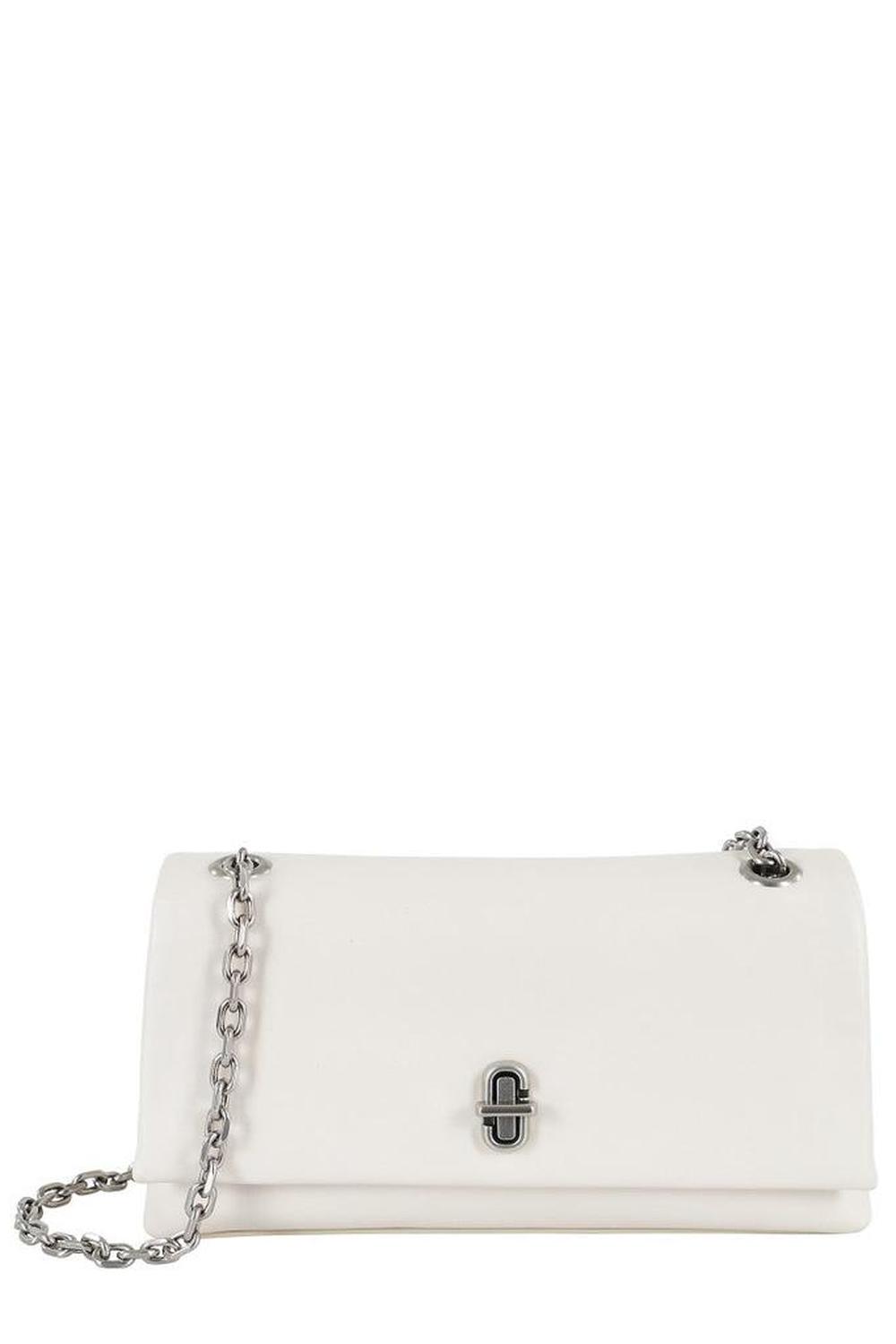 The Dual Chain Wallet by Marc Jacobs epitomizes refined elegance with its luxurious soft white nappa leather composition. This wallet features a streamlined design with a single compartment and convenient internal pockets, complemented by a stylish double chain handle and a secure flap closure with a turn-lock. A perfect accessory that balances practicality with high-end fashion, it enhances any ensemble with its sophisticated allure. 100% cow leather Height - 11 cm Width - 21 cm Depth - 7 cm Made in Italy