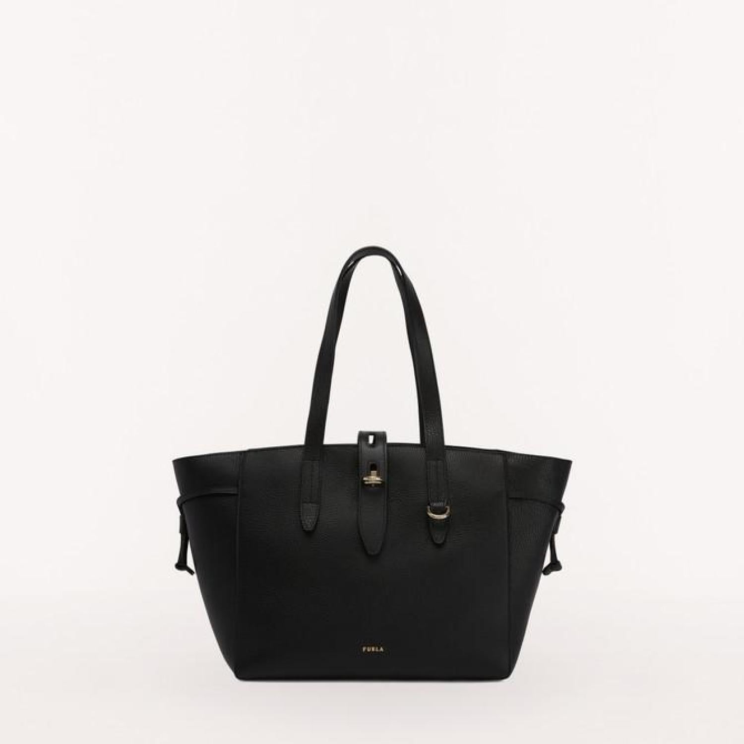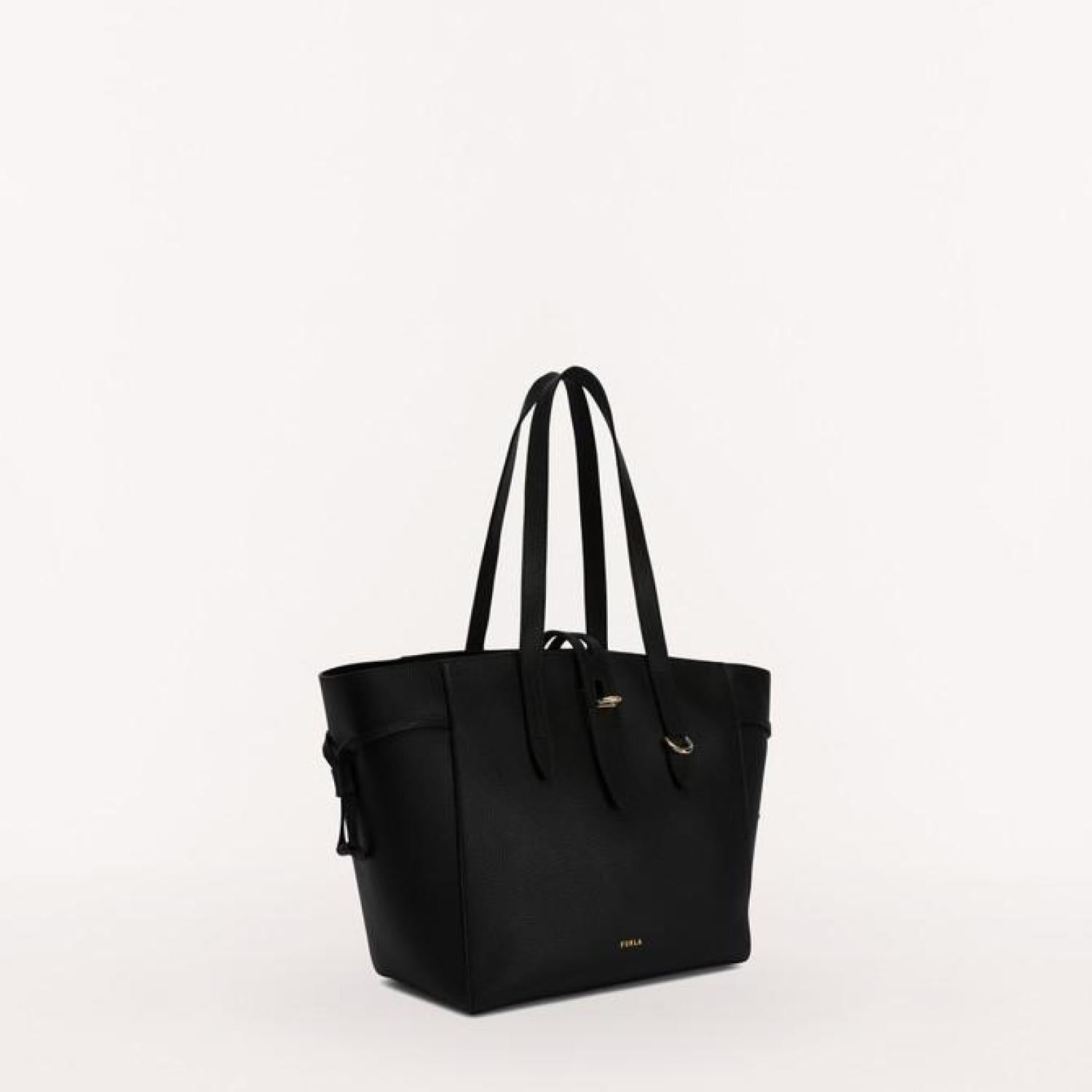 • Furla Net is a handbag made of grained leather with long handles so you can also wear it on the shoulder. The twist closure with ties and oval hole detailing on the front completes the bag. The lettering logo punched on the front completes the bag.