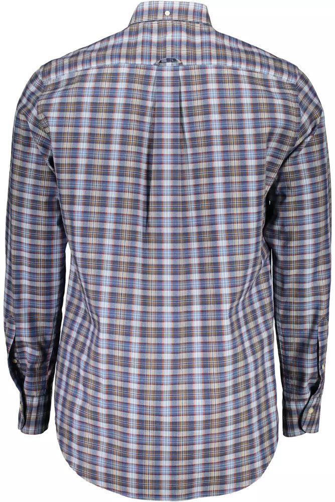 Elevate your wardrobe essentials with this impeccably tailored Gant shirt. Crafted for the modern man, this blue regular-fit piece boasts a sharp button-down collar and precise cuffs with a single button for a polished finish. The signature Gant logo subtly adorns the front, exemplifying its premium heritage. Made with a durable cotton-polyester blend, it promises comfort and lasting style for any occasion.