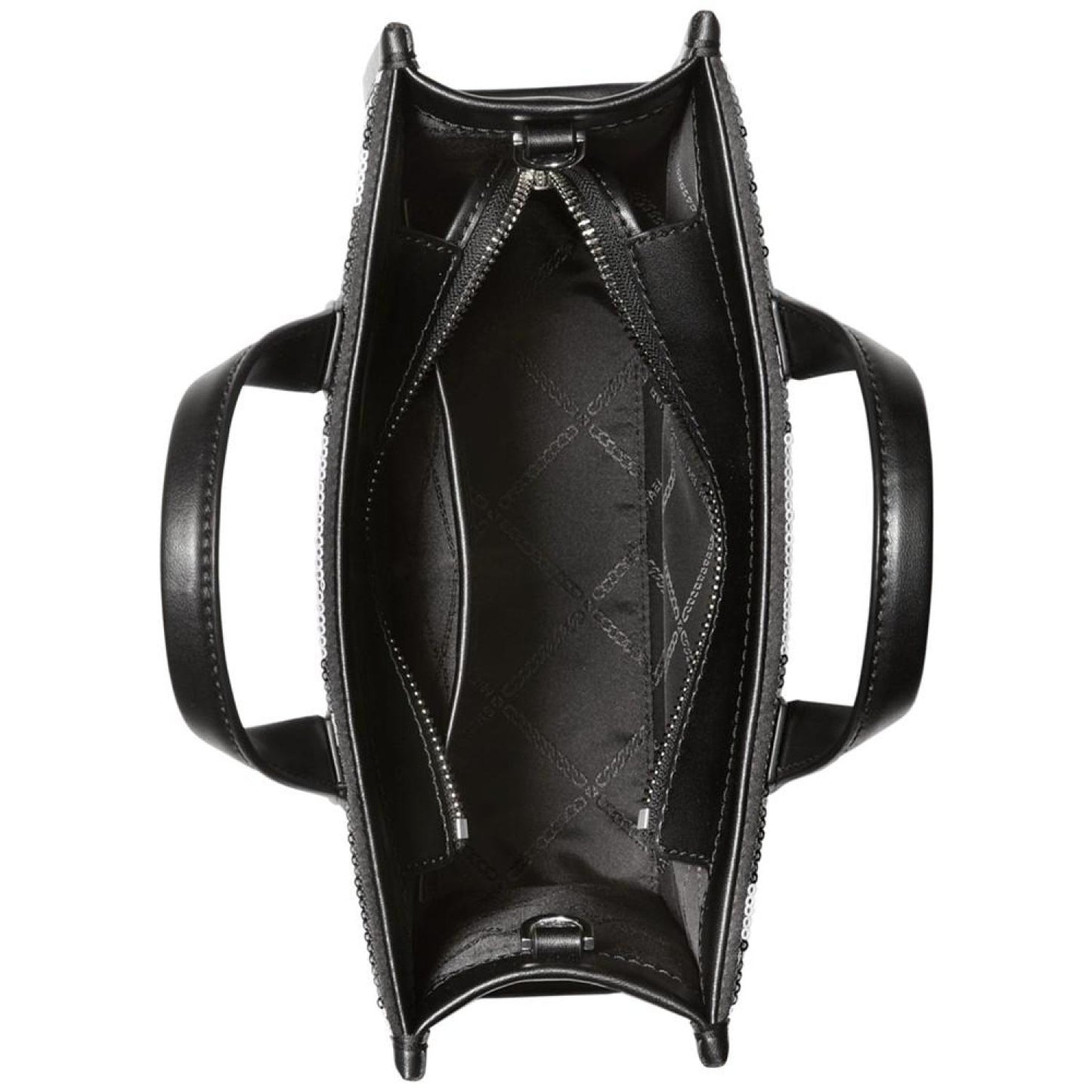Guaranteed to complement almost any outfit, this MICHAEL Michael Kors messenger bag is perfectly sized to carry just the essentials. Small sized bag; 10"W x 6-1/2"H x 3-1/4"D (width is measured across the bottom of handbag) Silhouette is based on 5'9" model 3-1/4" L handles; 22" L strap Zip closure Silver-tone exterior hardware & front slip pocket; interior slip pocket & zip pocket Polyester; lining: polyester; trim 1: polyurethane, cotton, polyester; trim 2: cotton Wipe clean Imported