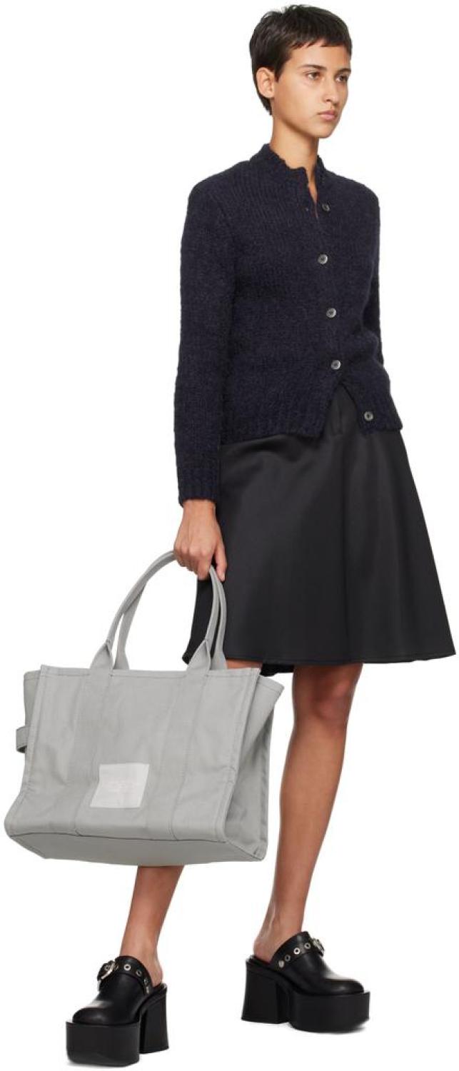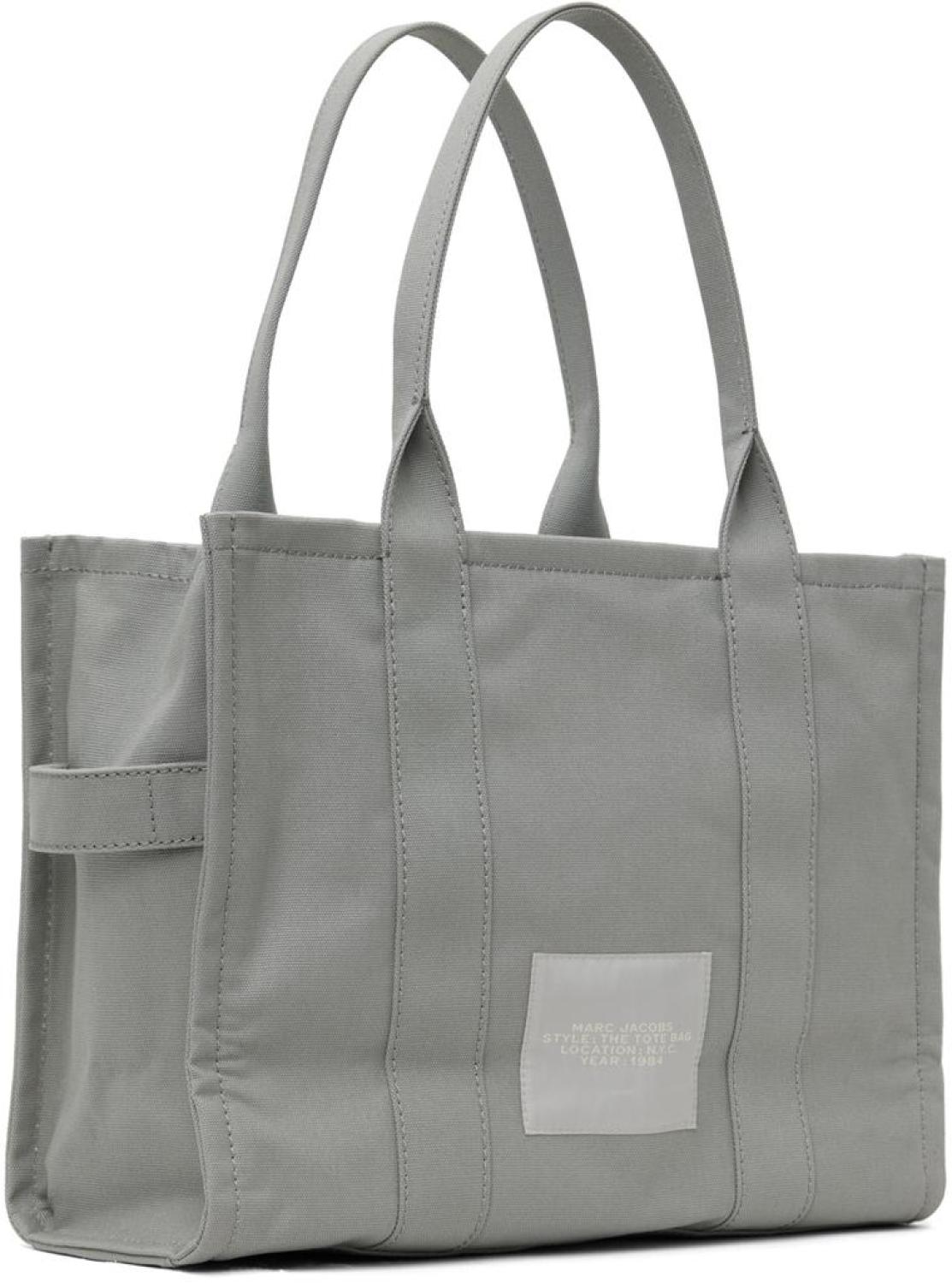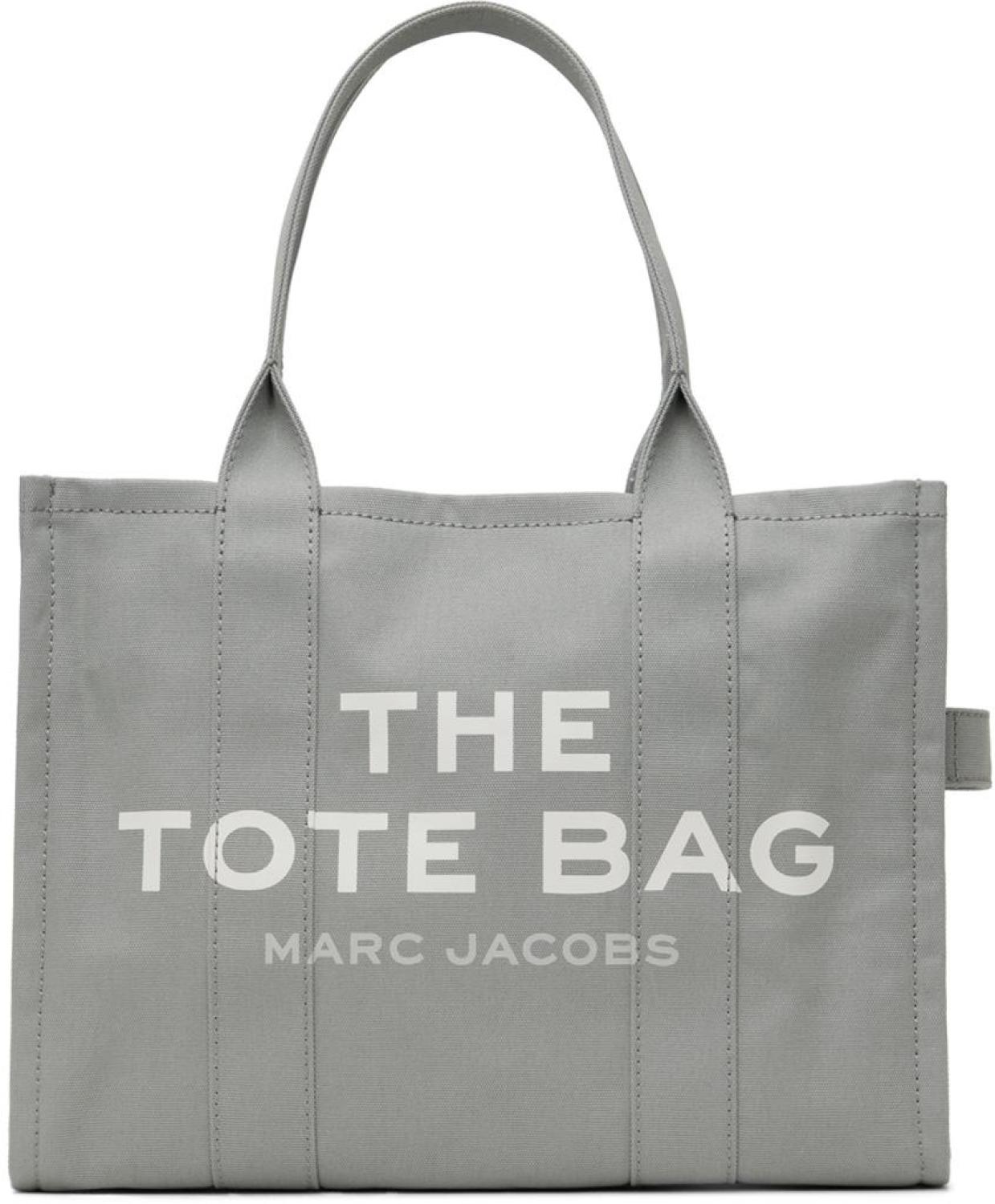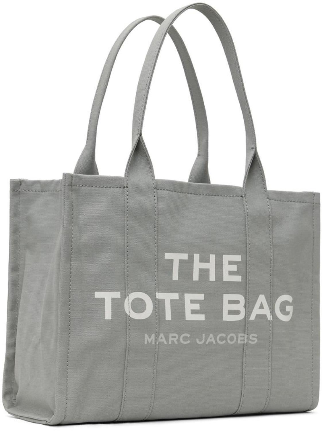 Marc Jacobs Gray 'The Large' Tote Cotton canvas tote in gray. · Twin rolled shoulder straps · Logo printed at face · Loop at side · Logo patch at back face · Zip closure · Patch and zip pockets at interior · Unlined · H13" x W16.5" x D6.5" Supplier color: Wolf grey Cotton. Made in Viet Nam. 241190F049041