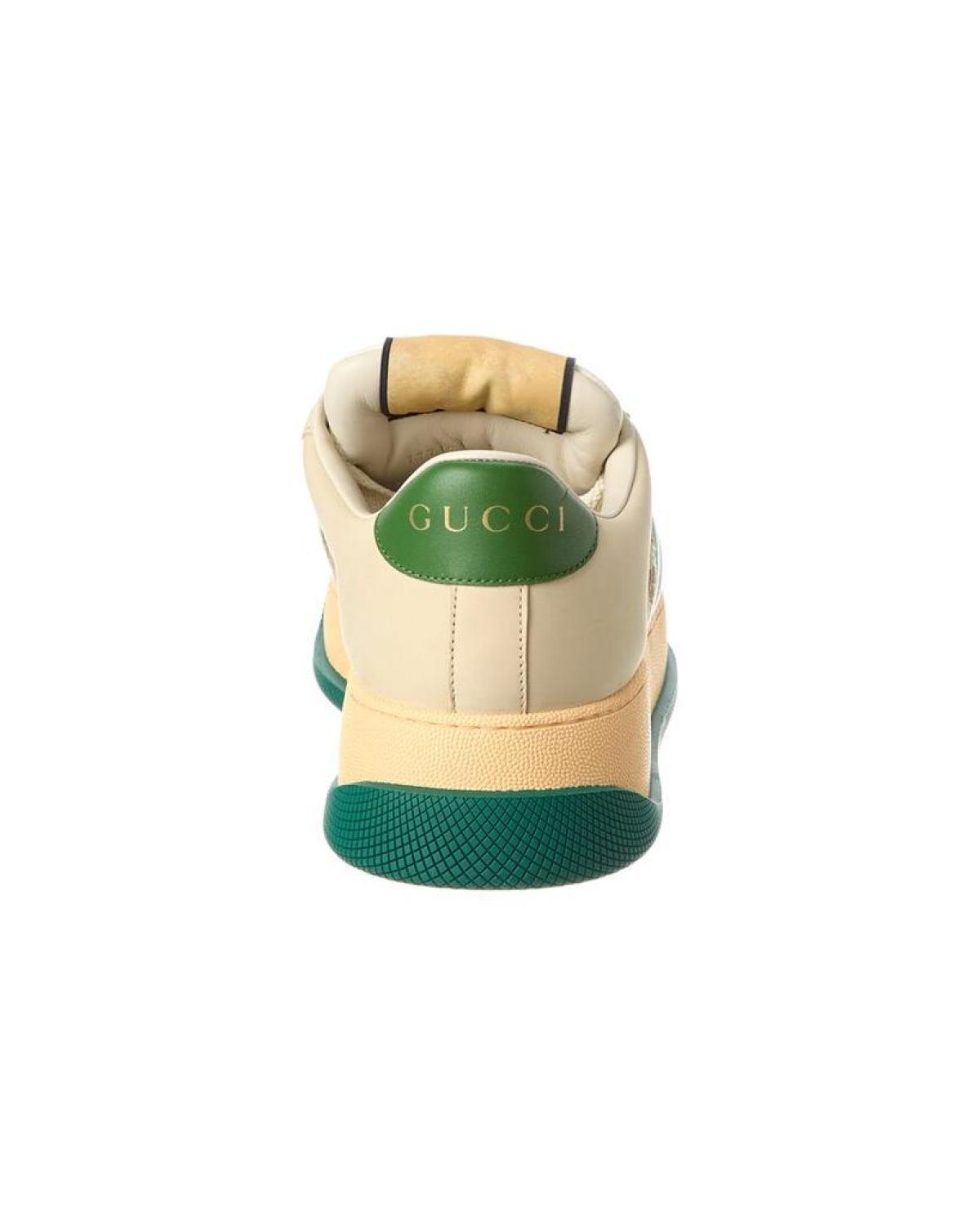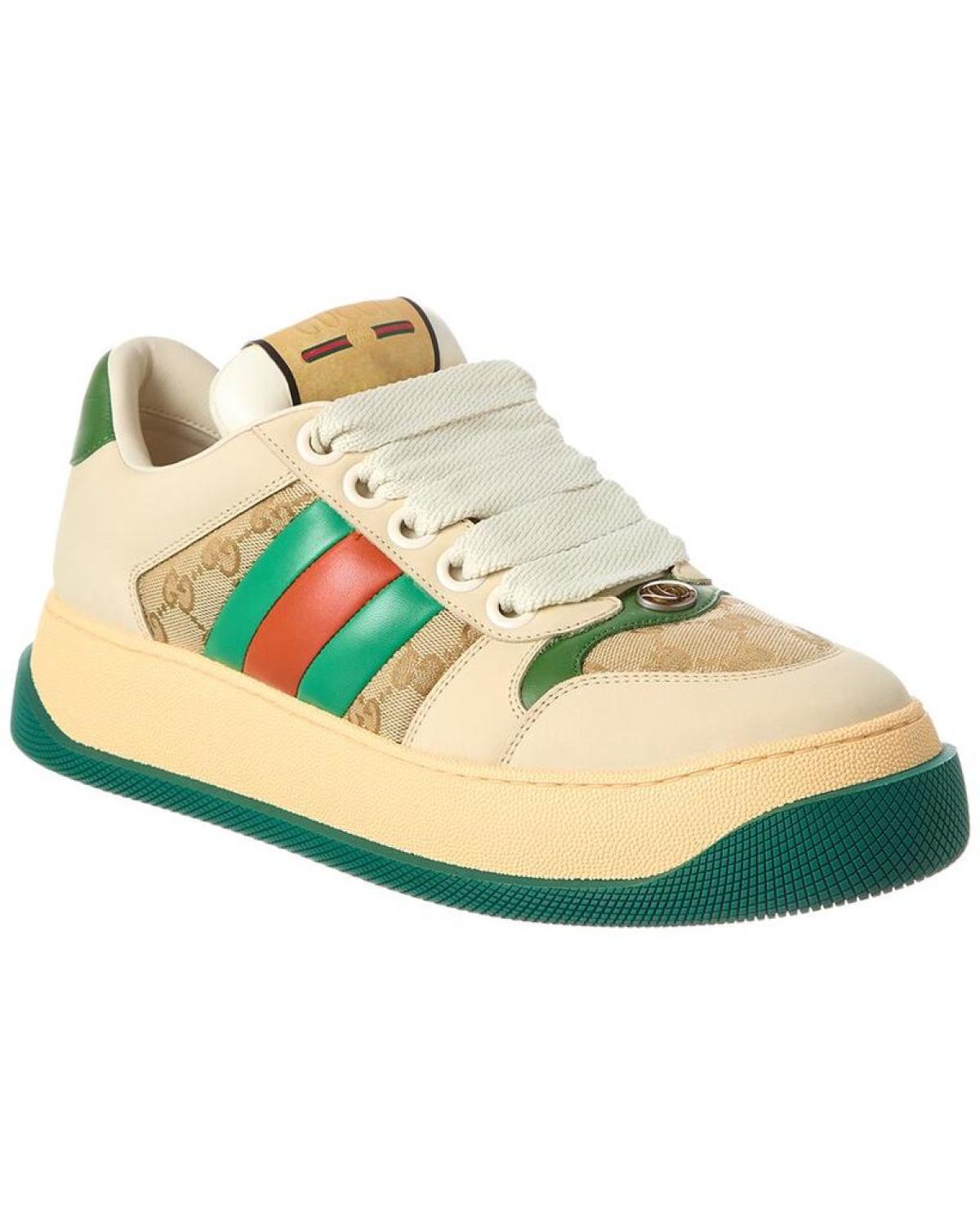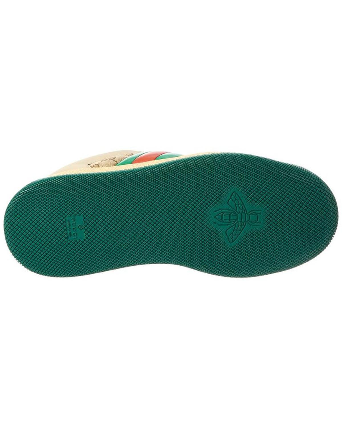 Elevate your sneaker game with the Gucci Screener GG Canvas & Leather Sneaker. This fashion-forward footwear is a true standout with its brown GG canvas and white, red, and green leather design, complete with distressed detailing and the iconic interlocking G logo accent. Made in Italy with top-quality craftsmanship, these sneakers feature a lace-up closure, lightly padded leather insole, and a rubber sole with traction for added comfort and style. Please note that size selections are in UK sizes, and it is recommended to size down as this item typically runs large. Embrace Italian luxury redefined with Gucci - a brand known for its eclectic and coveted designs. This sneaker is a must-have addition to any fashion-savvy man's wardrobe.