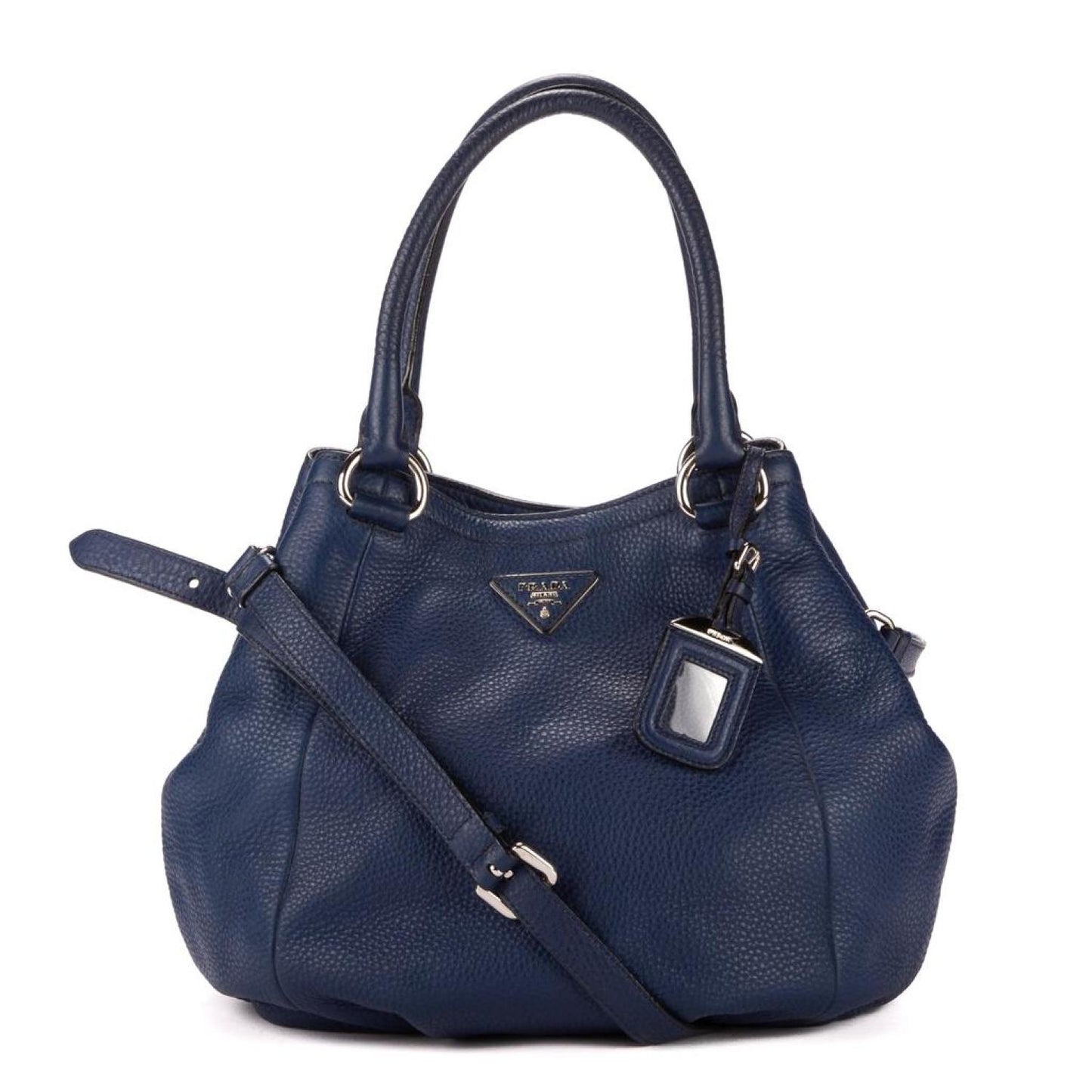 Prada Handbag in Blue Calfskin leather and Silver hardware. Dimensions - 24*29*11cm. Serial number - None. Inclusions - "Strap, Luggage".