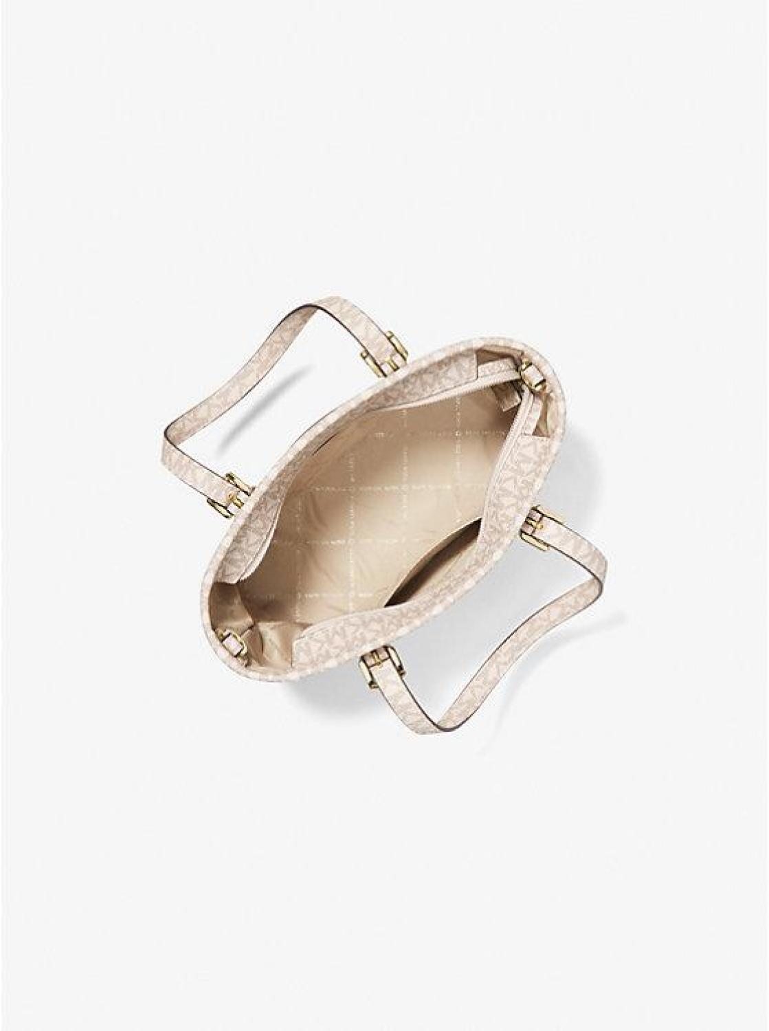 Compact yet practical, our Jet Set tote bag is the ideal daily companion. A smooth exterior with Signature Logo-print trim and a polished charm accent make a luxe statement, while a top-zip fastening ensures your belongings will stay in place. Carry it crossbody on busy days that require on-the-go ease. • Tote bag • Coated canvas blend/logo-print canvas • 88.92% coated canvas/11.08% polyester • Trim: 89.4% coated canvas/9.6% polyester/1% polyurethane • Gold-tone hardware • 10.75”W X 7.5”H X 4”D • Handle drop: 5” • Interior details: front slip pockets, back zip pocket • Lining: 100% polyester • Zip fastening • Imported • Tote bag • Coated canvas blend/logo-print canvas • 88.92% coated canvas/11.08% polyester • Trim: 89.4% coated canvas/9.6% polyester/1% polyurethane • Gold-tone hardware • 10.75”W X 7.5”H X 4”D • Handle drop: 5” • Interior details: front slip pockets, back zip pocket • Lining: 100% polyester • Zip fastening • Imported