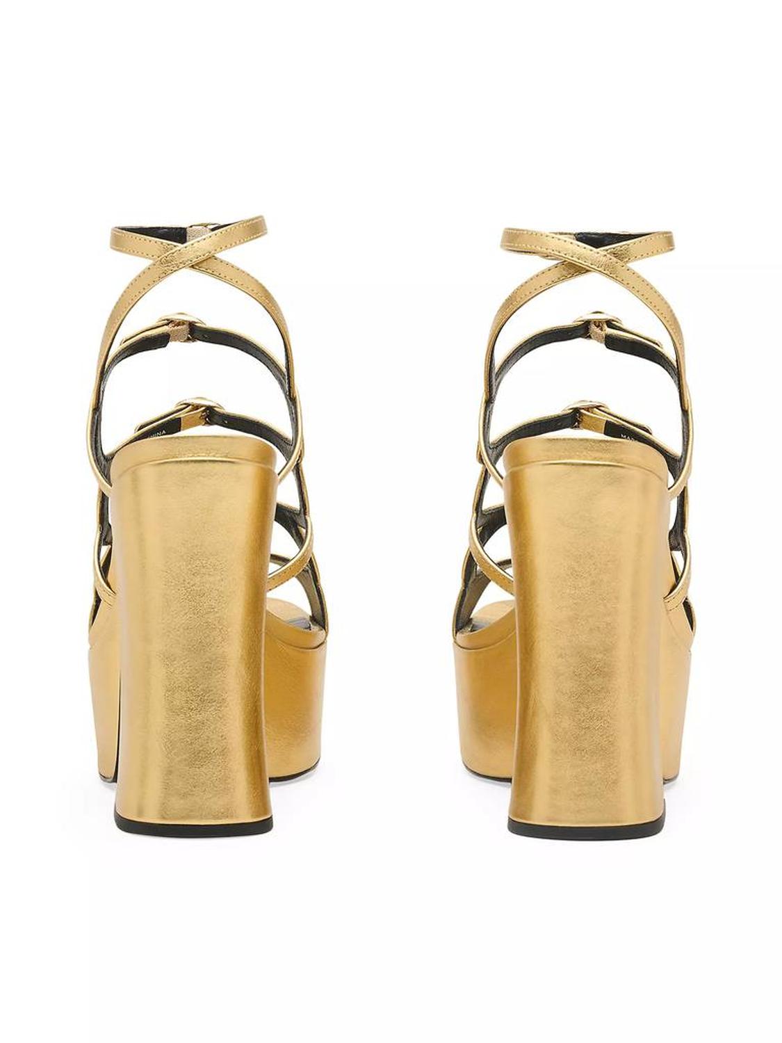 Stacked on top of a dramatic platform heel, Marc Jacobs' Kiki metallic leather pump sandals showcase a cage-like camp and adjustable ankle strap. Open round toe Adjustable buckle closure Leather upper Leather sole Leather sole Imported SIZE Heel height: about 5" (125mm) Platform height: 3" (80mm) Stacked on top of a dramatic platform heel, Marc Jacobs' Kiki metallic leather pump sandals showcase a cage-like camp and adjustable ankle strap.Open round toeAdjustable buckle closureLeather upperLeather soleLeather soleImportedSIZEHeel height: about 5" (125mm)Platform height: 3" (80mm)