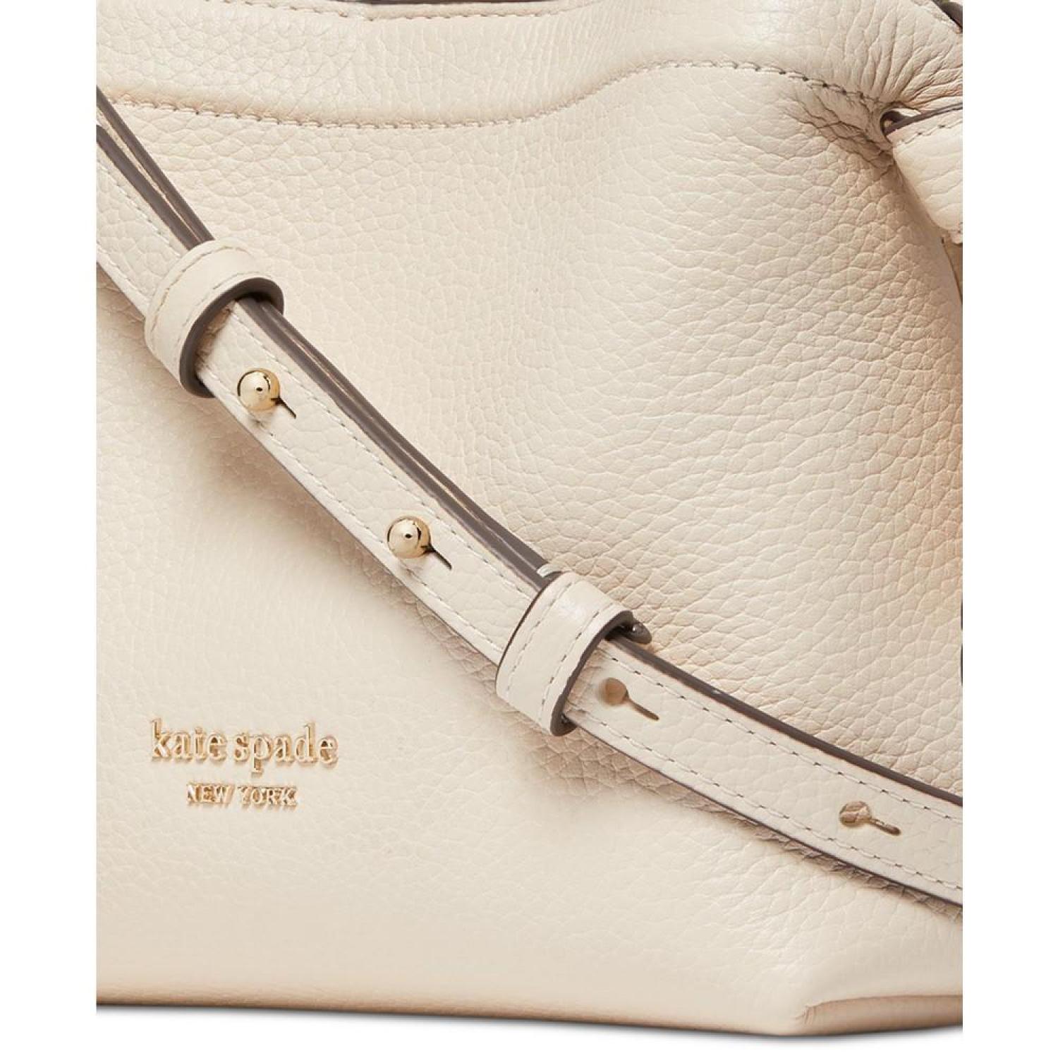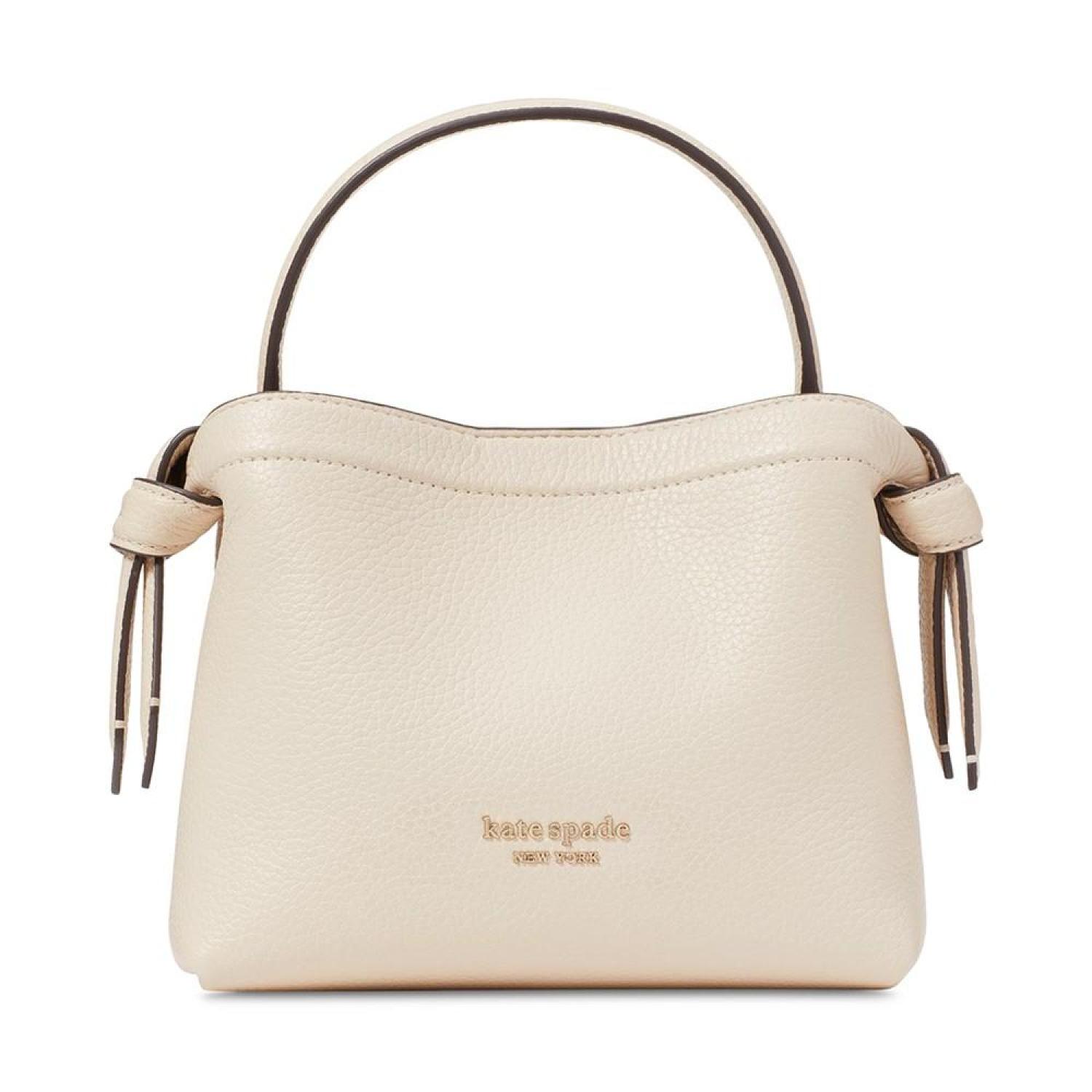 • Reimagined, the Knott crossbody tote by kate spade new york is here in a compact new size. This versatile style features an optional crossbody strap, so you can easily sling it over your shoulder when you find your hands full.