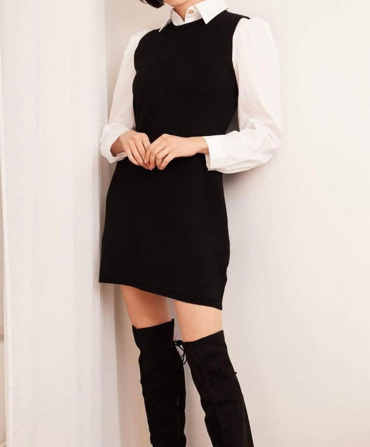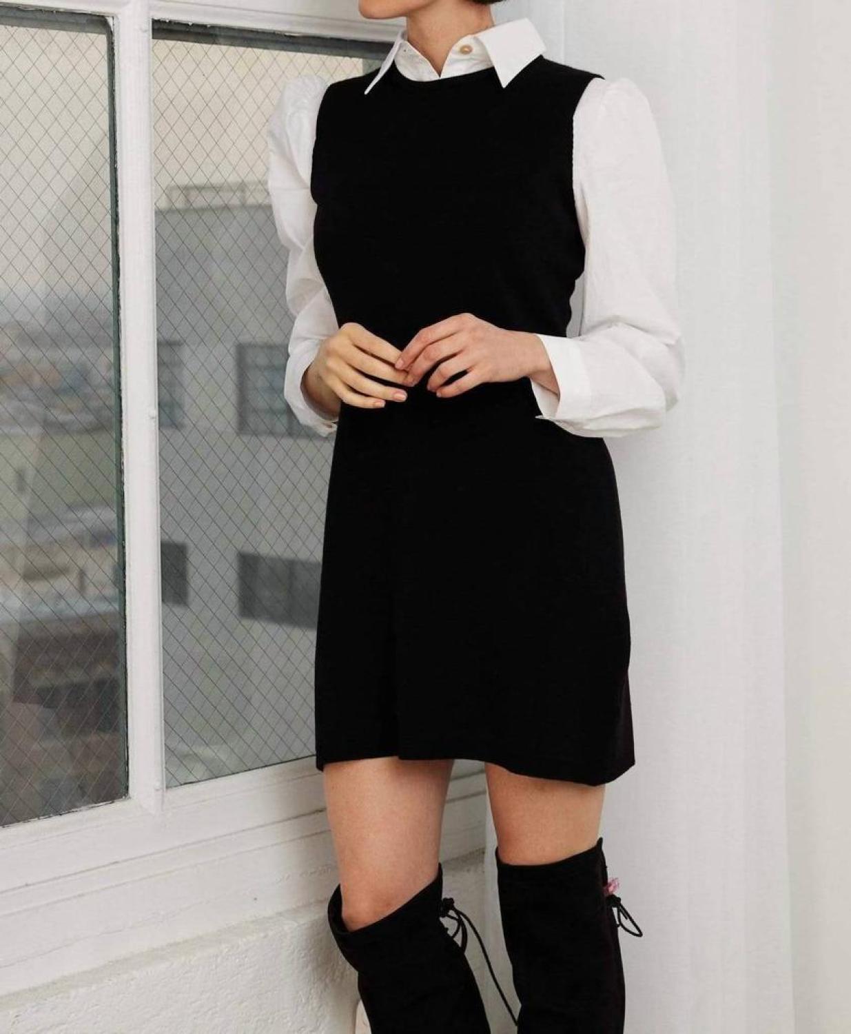 The perfect mini dress for those warmer months.Soft and body conscious knit mini dress. Poplin collar. Raglan sleeve. 82% Rayon 18% Nylon. Mini silhouette. Back zip. Hand wash. Imported.