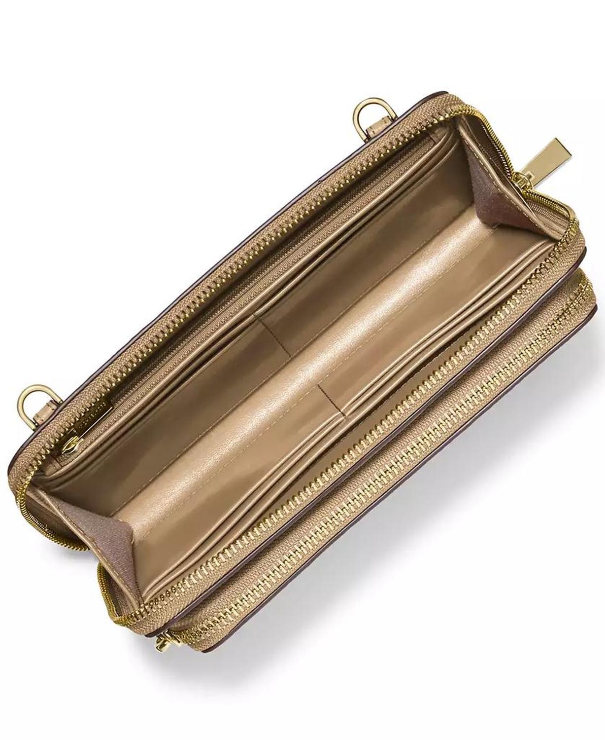 Effortlessly chic and endlessly functional, Michael Kors Jet Set small continental crossbody bag is your everyday essential reimagined. Designed with sleek compartments for bills, cards, and coins, plus an adjustable strap for tailored comfort, it keeps you stylishly organized from day to night. Small-sized bag; 8"W x 4.5"H x 1.75"D; 0.68 lbs. approx. weight 22-1/2 to 24"L adjustable crossbody strap Zipper closure Gold hardware, 1 back zip pocket, 4 back credit card pockets, 1 front bill compartment, 4 front credit card pockets & 1 front zip pocket Silhouette is based on 5'9" Shell: 100% leather; lining: 100% polyester Wipe clean Imported