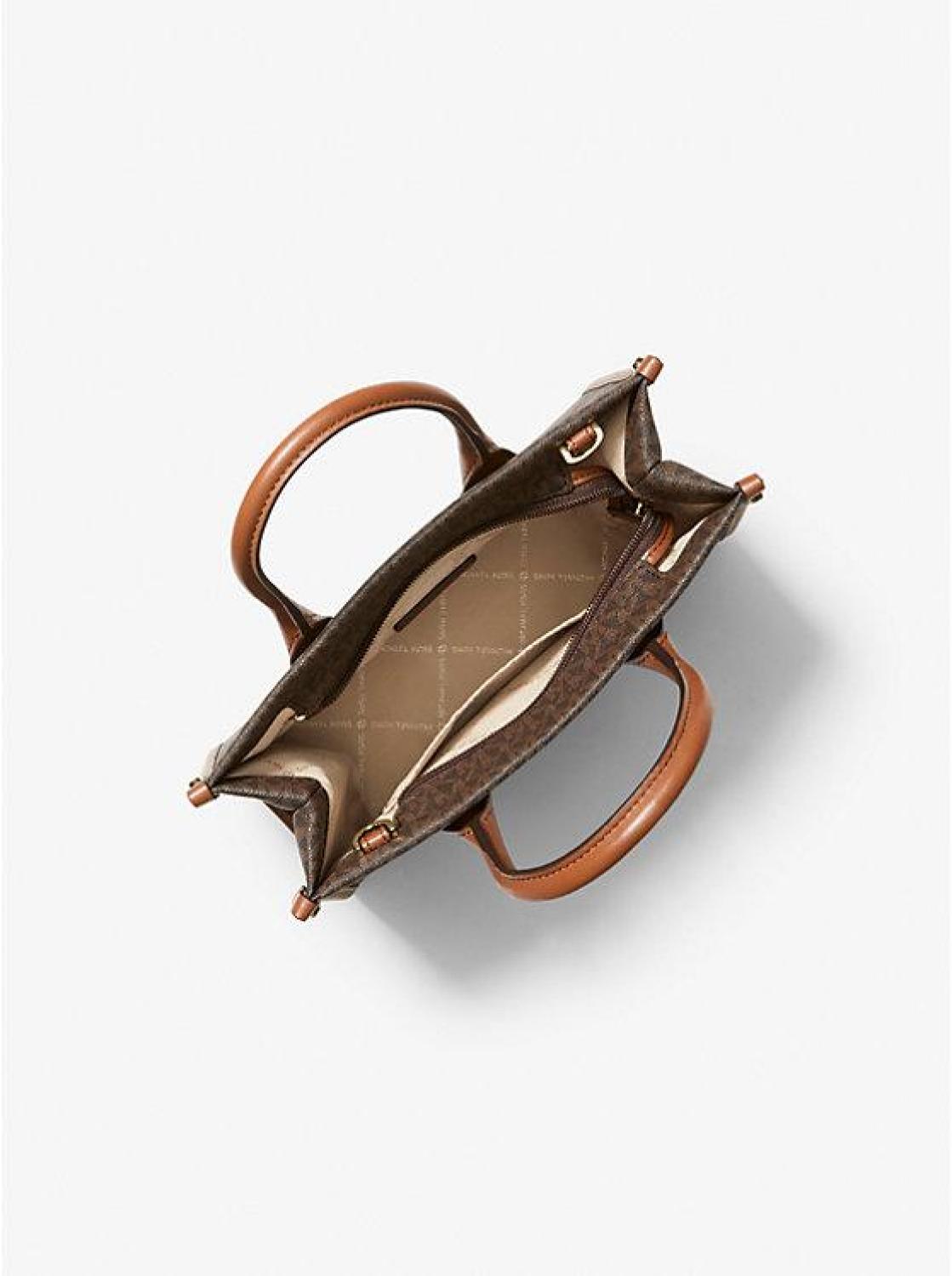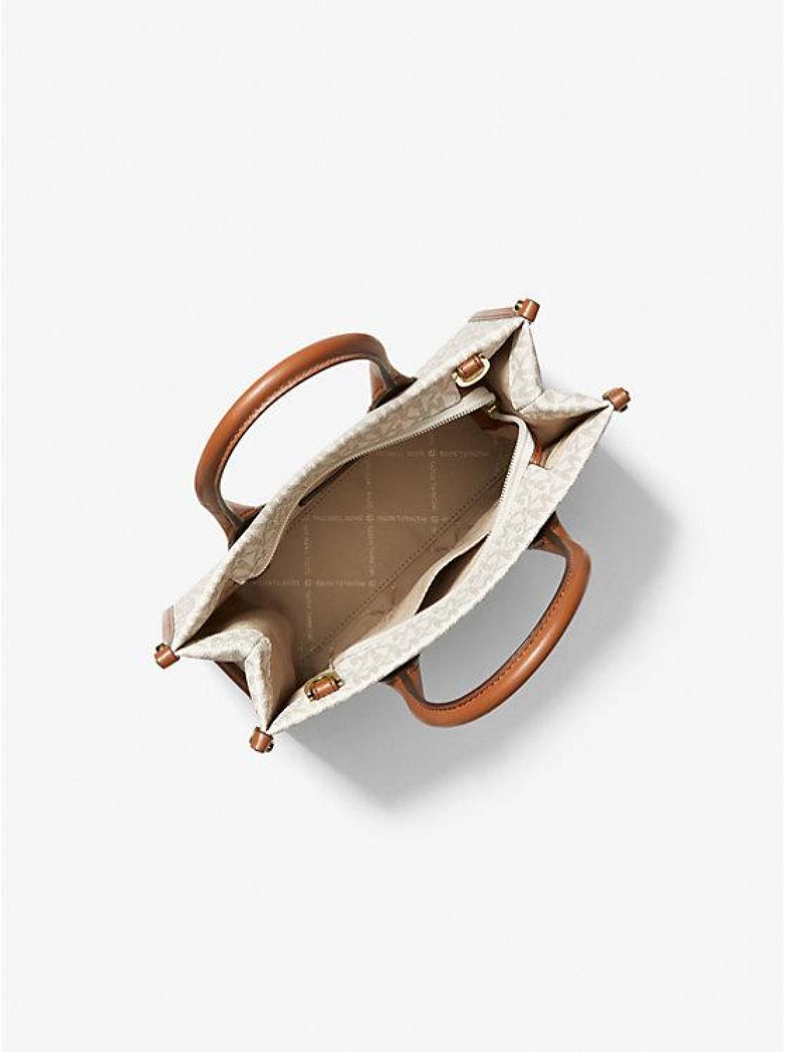Crafted from Signature-print canvas in a structured silhouette, our Mirella crossbody features buttery-smooth trim and a polished MK charm. Its compact size is perfect for days about town. Carry the bag by the smooth top handles or over the shoulder via the detachable strap. • Crossbody bag • Logo-print canvas • 89.4% coated canvas/9.6% polyester/1% polyurethane • Trim: 60% polyurethane/20% cotton/20% polyester • Gold-tone hardware • 9.25”W X 7.75”H X 3.75”D • Handle drop: 3.25” • Adjustable strap: 20.25”-23.75” • Interior details: back zip pocket, front slip pocket • Lining: 100% polyester • Zip fastening • Imported • Crossbody bag • Logo-print canvas • 89.4% coated canvas/9.6% polyester/1% polyurethane • Trim: 60% polyurethane/20% cotton/20% polyester • Gold-tone hardware • 9.25”W X 7.75”H X 3.75”D • Handle drop: 3.25” • Adjustable strap: 20.25”-23.75” • Interior details: back zip pocket, front slip pocket • Lining: 100% polyester • Zip fastening • Imported