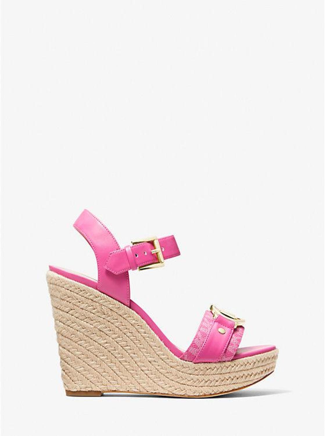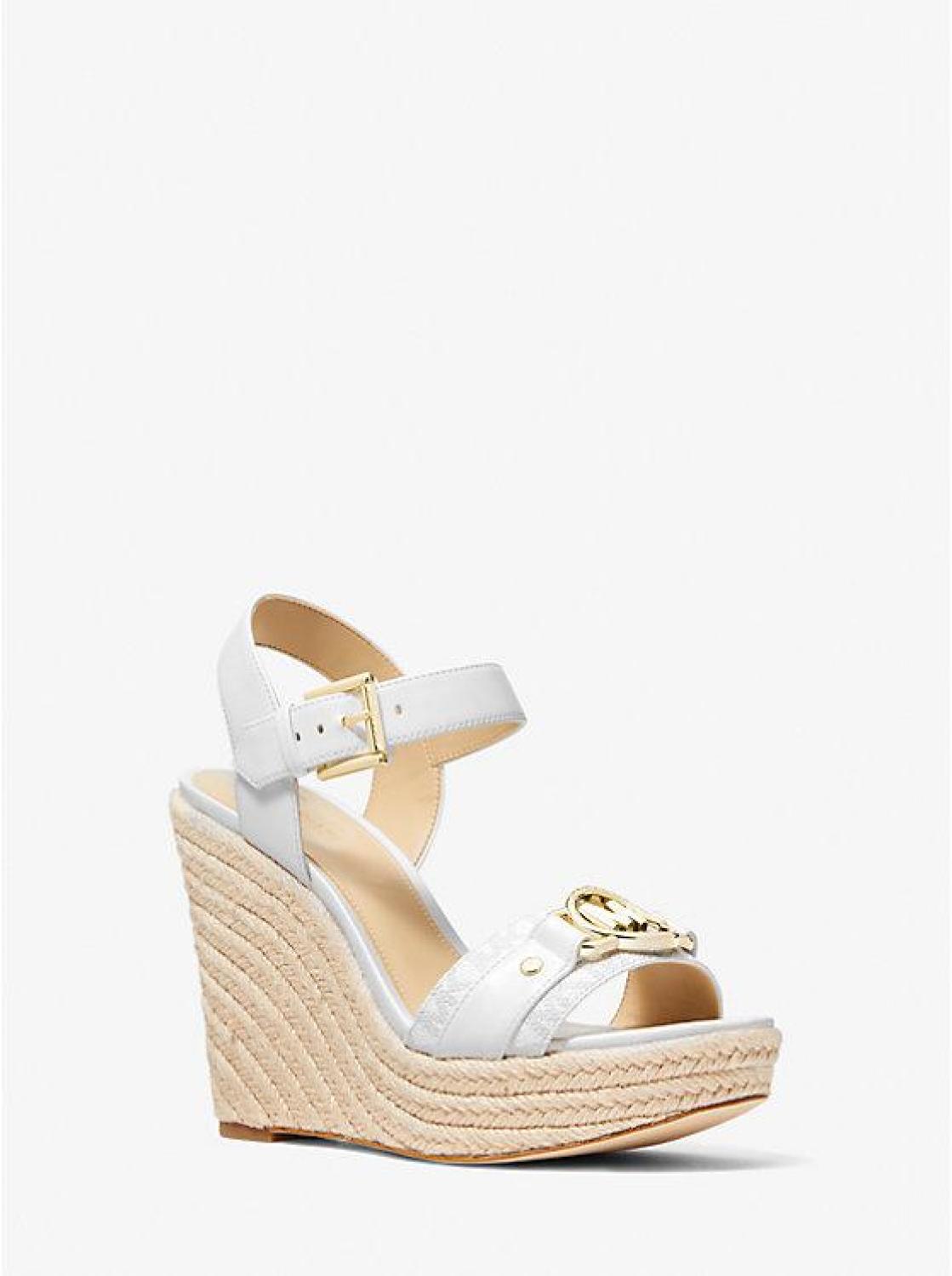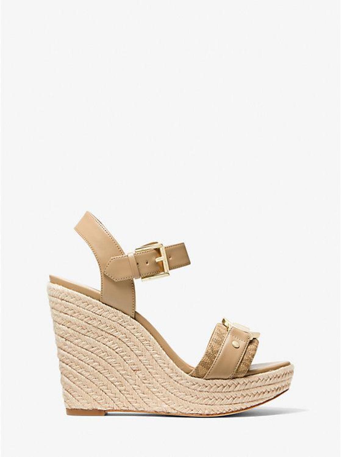 If you're looking for a wedge sandal to wear for your next warm-weather getaway, or an eye-catching pair for dining al fresco, our Rory is the answer. This pair is crafted from a combination of smooth and Signature Logo-print canvas panels and set on a jute heel for a textural mix. Match your jewelry to the high-shine logo charm. • Wedge sandal • Polyurethane/logo-print canvas • 100% polyurethane • Lining: polyurethane blend • Sole: rubber • Open toe • Buckle fastening • Heel height: 4.5” • Platform height: 1.5” • Heel type: jute • Imported • Wedge sandal • Polyurethane/logo-print canvas • 100% polyurethane • Lining: polyurethane blend • Sole: rubber • Open toe • Buckle fastening • Heel height: 4.5” • Platform height: 1.5” • Heel type: jute • Imported