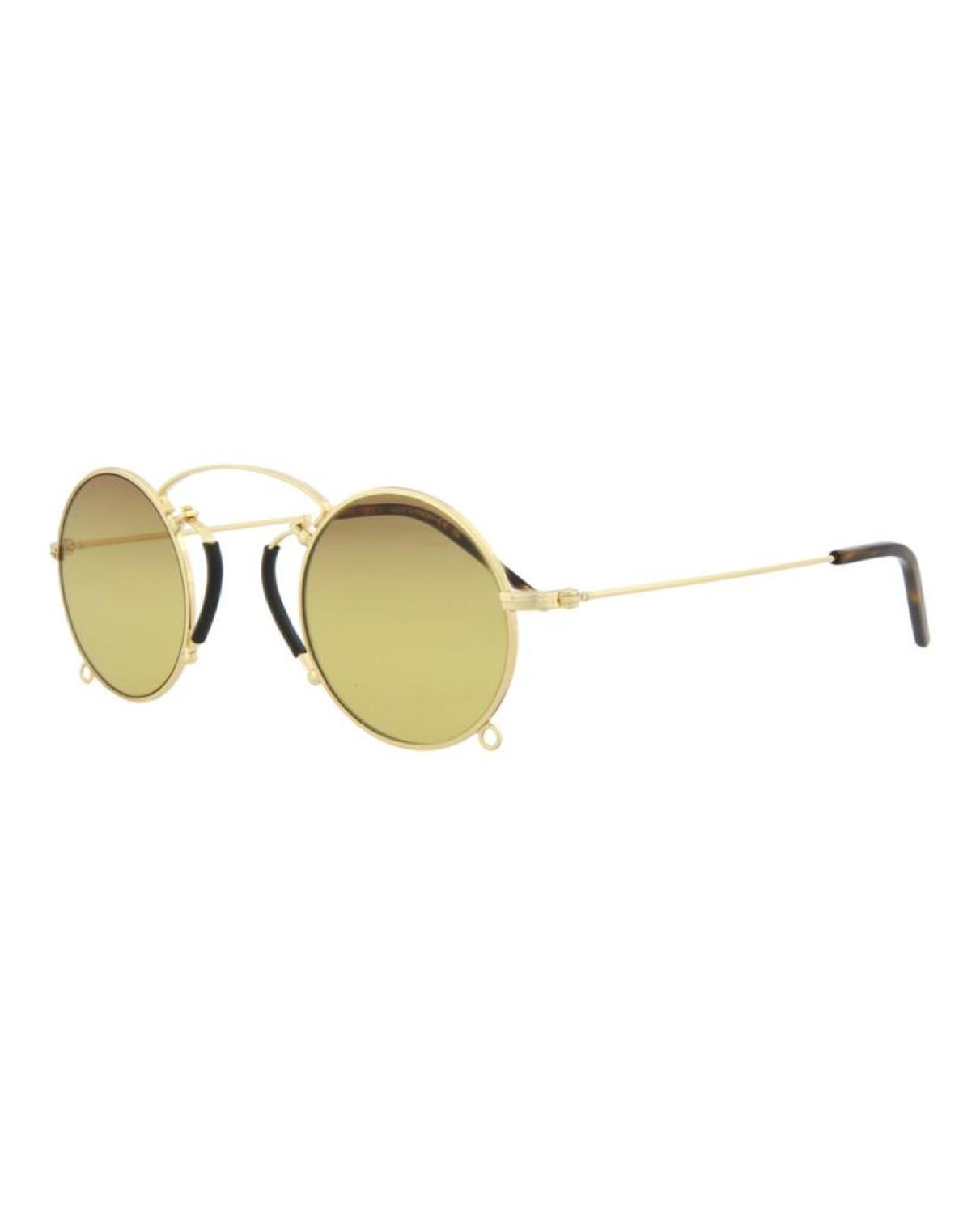 • DETAILS Temple Length - 145mm; Lens Width - 44mm; Bridge Width - 28mm; Lens Height - 44mm Frame Shape - Round/Oval Frame Material - Metal Temple Material - Metal Bridge Material - Metal Non-Polarized Glasses come with a velvet case in one of six jewel-toned shades. The case color is hand selected for each pair of glasses. Also included is a matching satin flannel pouch and microfiber cloth. Made in Italy
