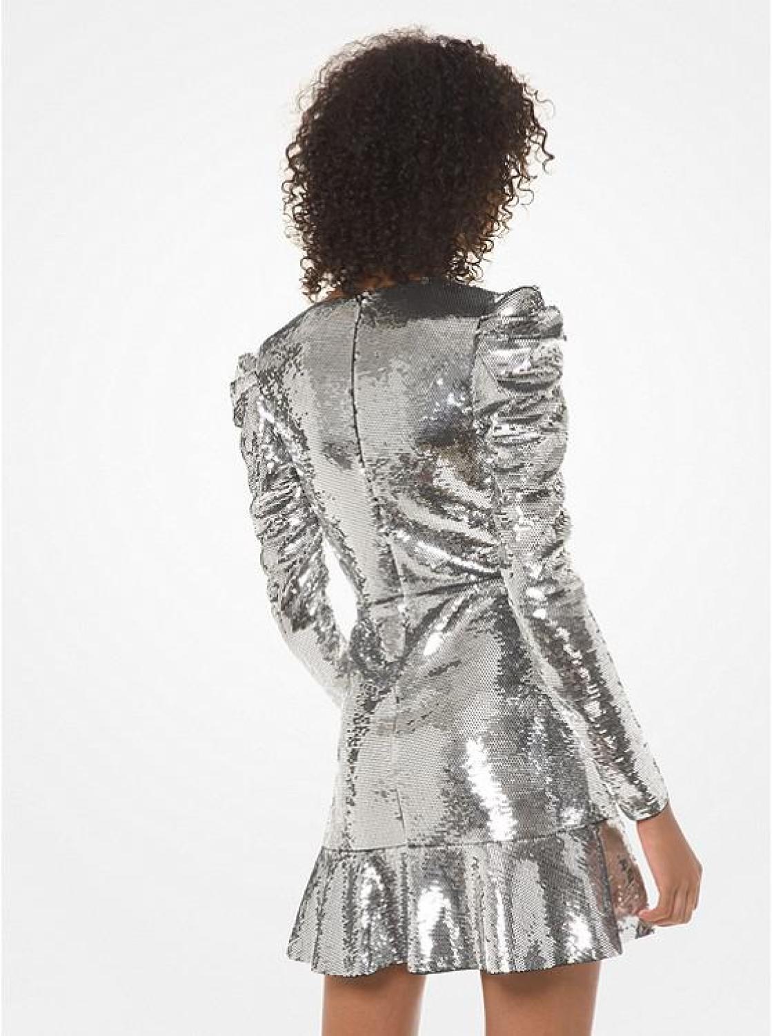 Sequined Ruched-Sleeve Dress