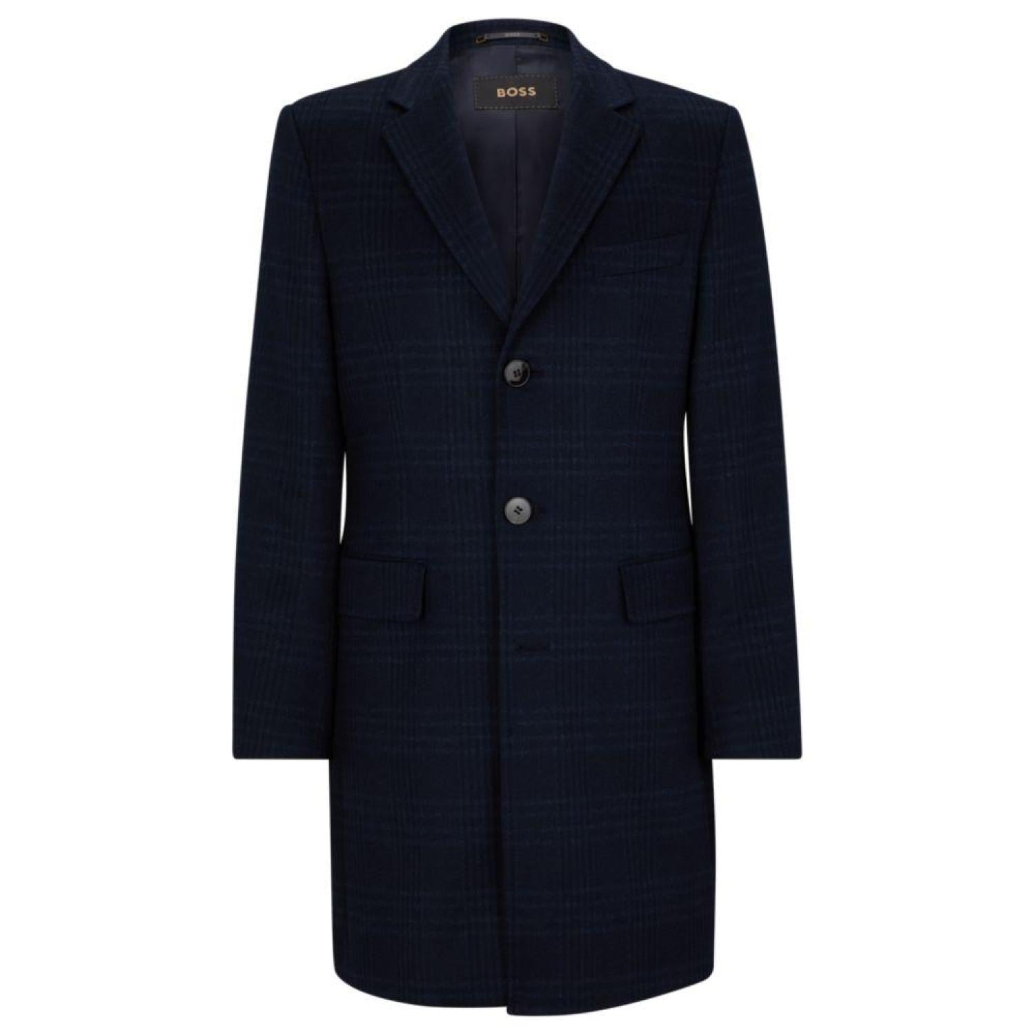 A fully lined coat by BOSS Menswear, cut to a defined fit in a luxurious wool-cashmere blend with a checked pattern for modern style.