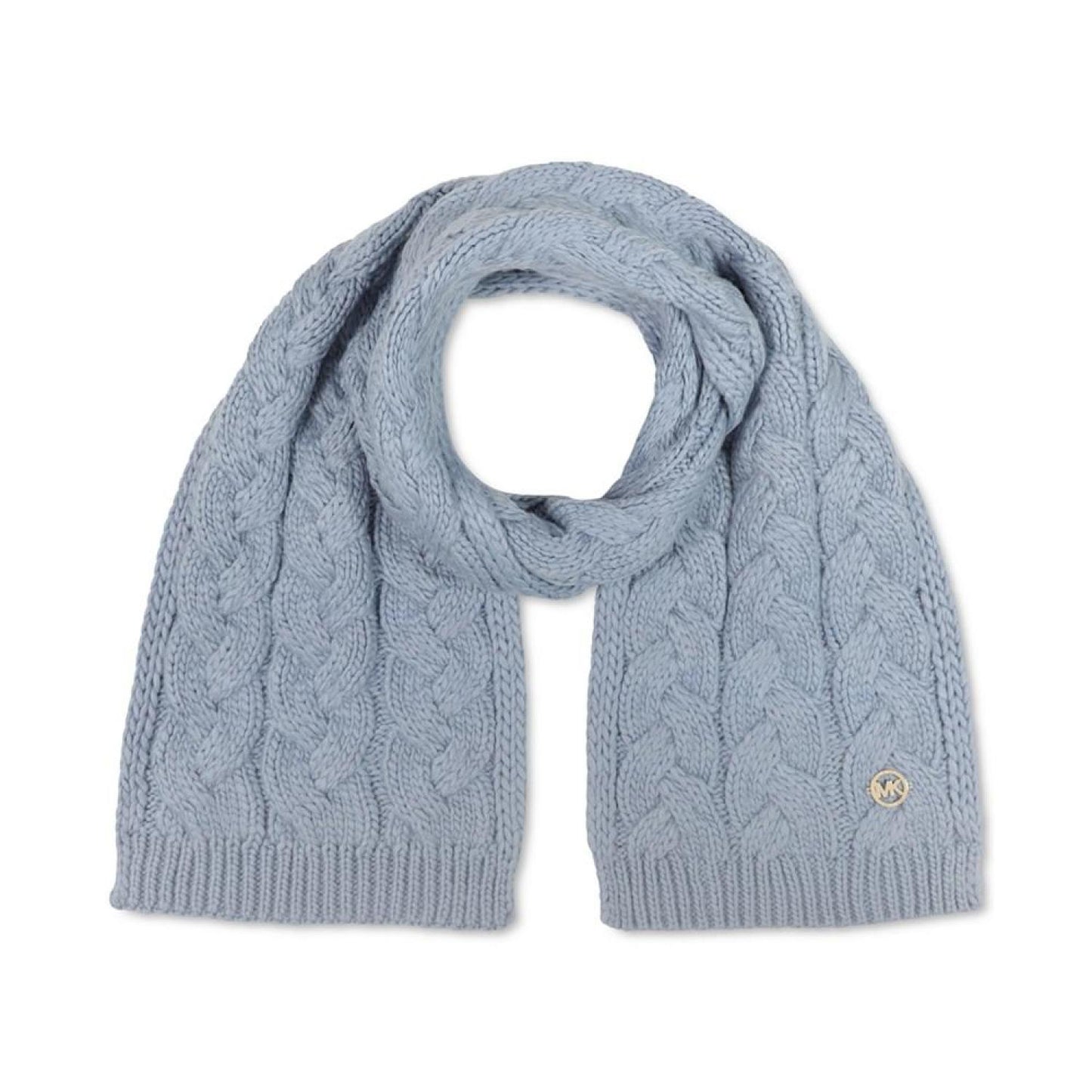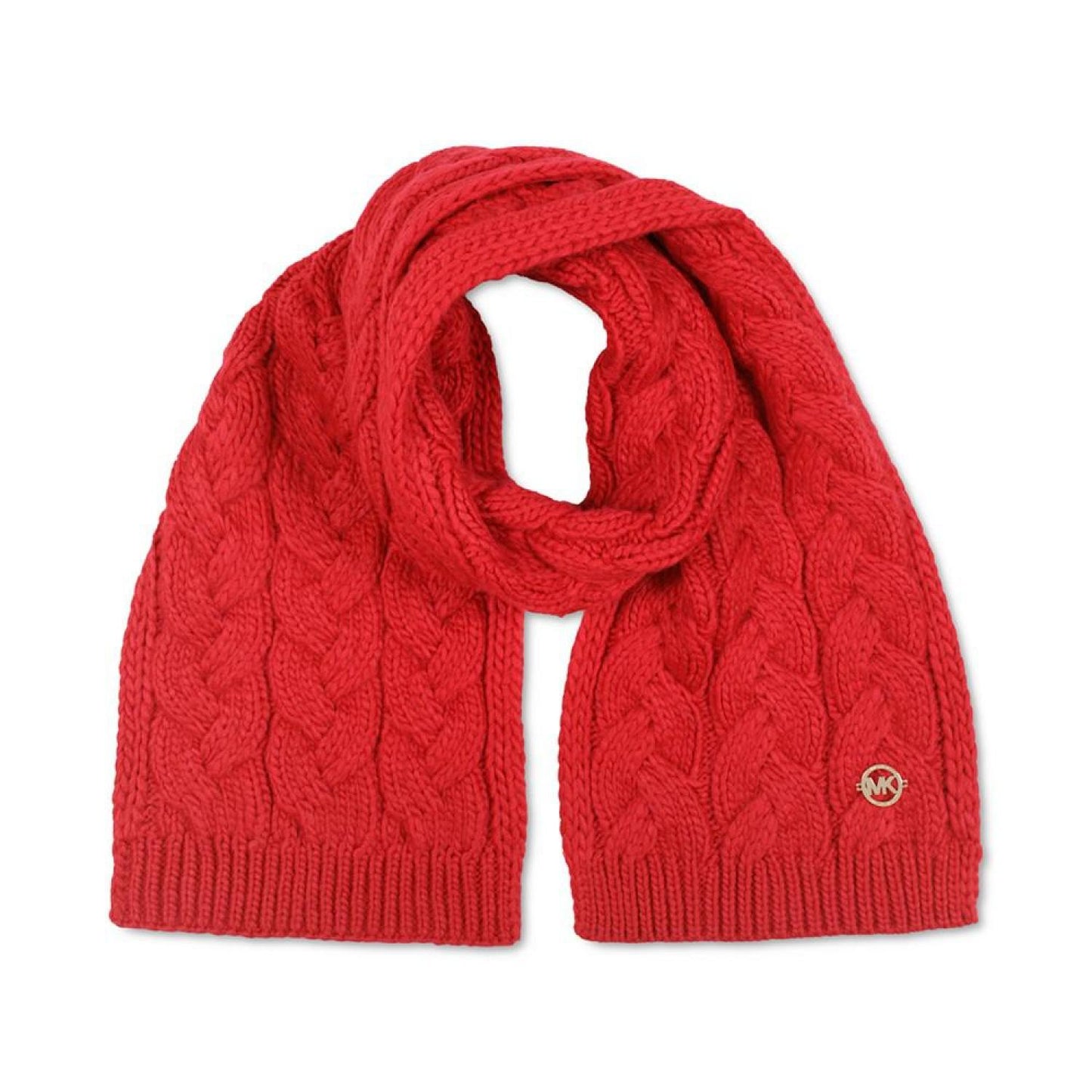Look and feel luxurious this winter with this classic cable-knit scarf from Michael Kors. 10-1/2"W x 66"L Cable knit Logo charm plate Acrylic Hand wash Imported