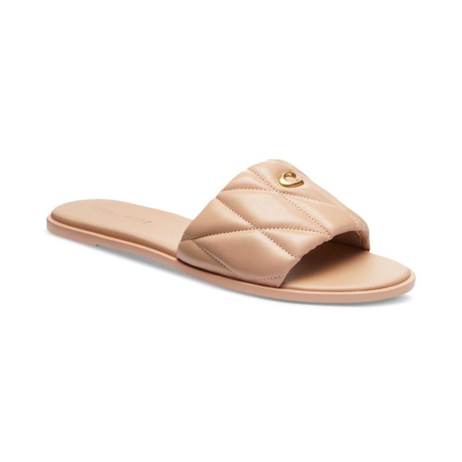 Diamond quilted leather adds supple texture to a gorgeous slide design in the signature COACH Holly slides.