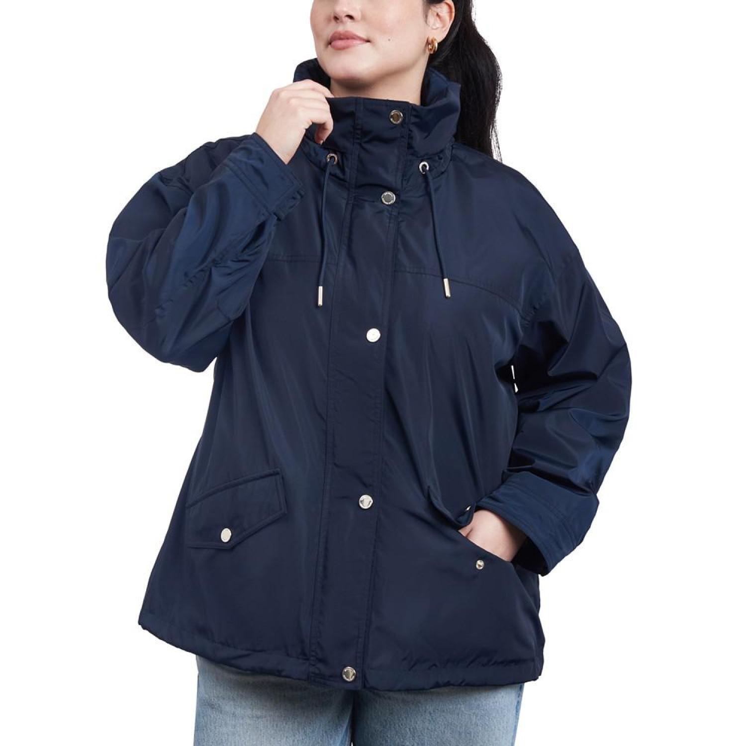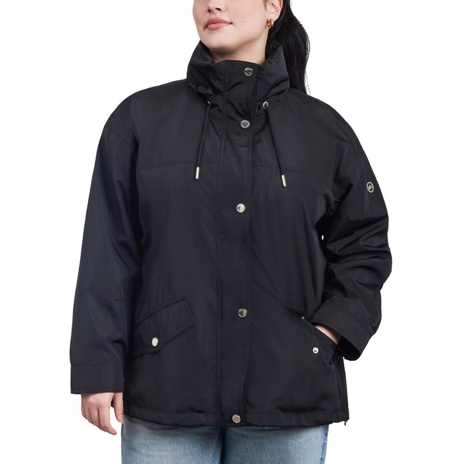 • A raincoat with at twist, this plus size pick from MICHAEL Michael Kors features a bomber-style look with a cinched waistline.