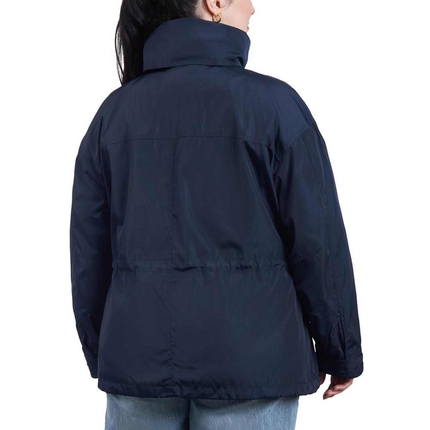 Women's Plus Size Cinched-Waist Bomber Raincoat