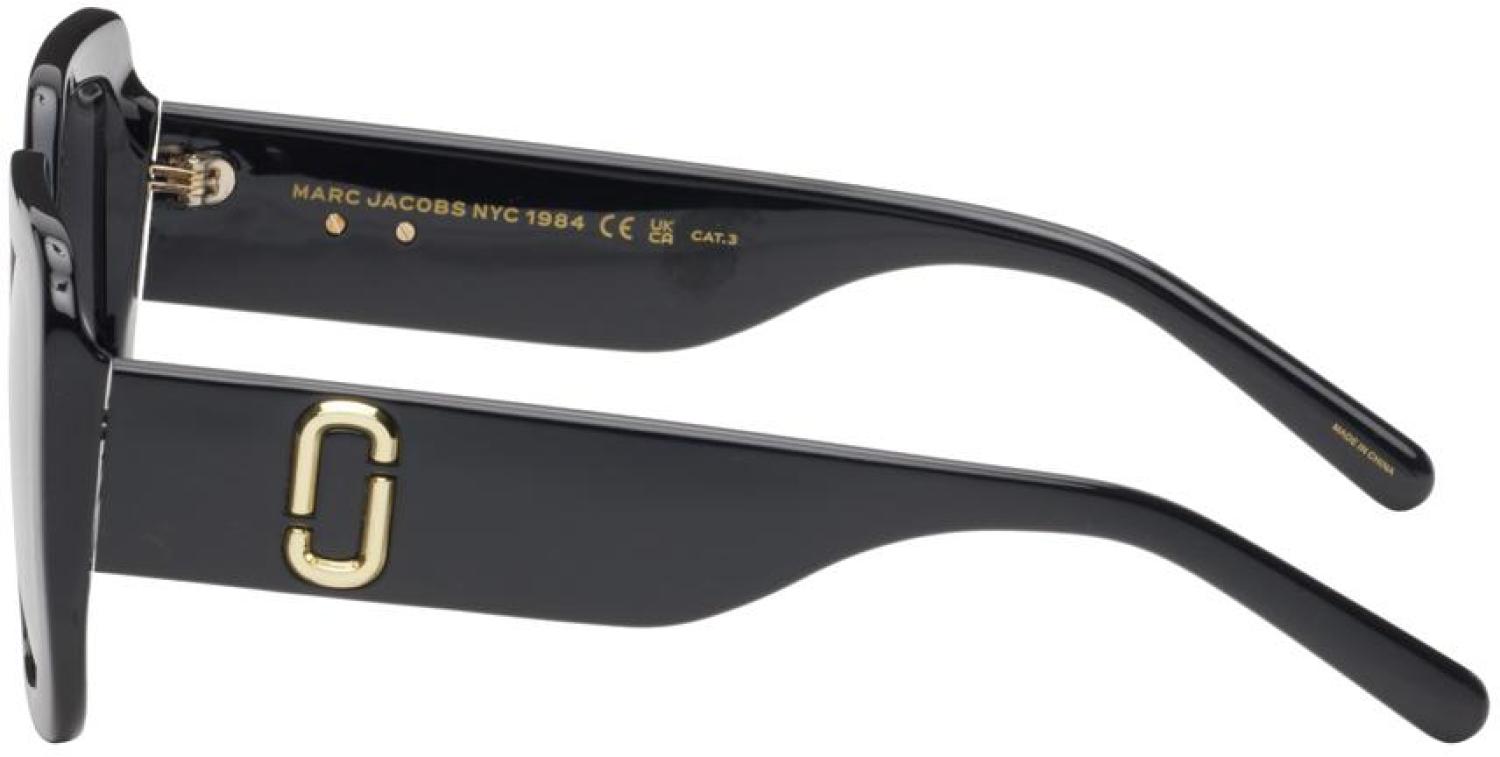 Marc Jacobs Black Square Sunglasses Square acetate-frame sunglasses in black. · Gray lenses · Logo etched at lens · Integrated nose pads · Logo hardware at temples · Gold-tone hardware · Leather pouch included · Size: 53.21 145 Supplier color: Black Acetate. Made in China. 232190F005013