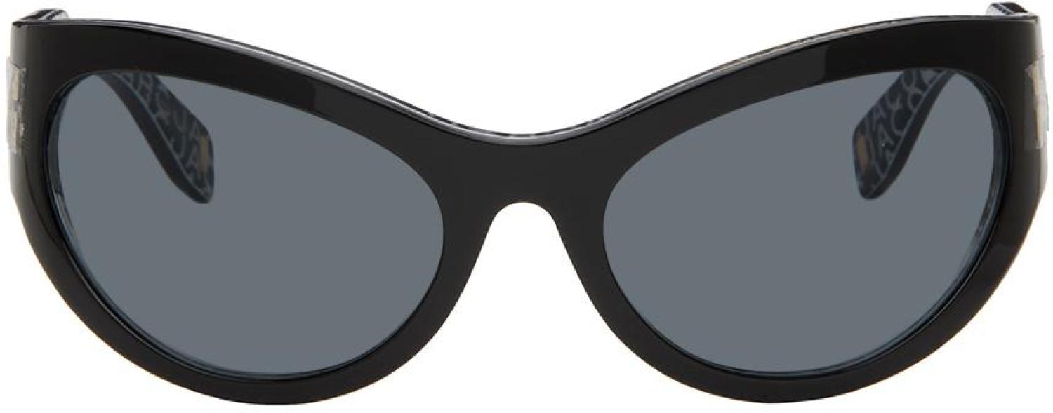 Wraparound cat-eye acetate-frame sunglasses in black.