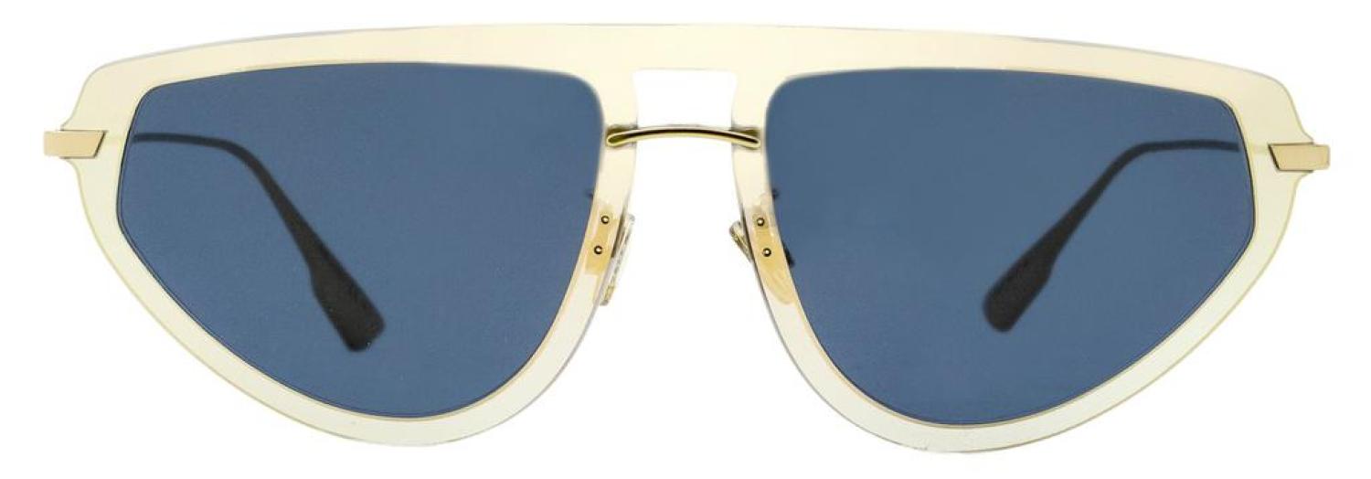 The Christian Dior Ultime 2 Sunglasses feature a cat-eye shape for women. These Sunglasses features an NXT frame front that is flush with the lenses and has a reflective finish. Dior sunglasses are daring and elegant, representing the fresh innovation the brand is known for. Providing 100% UV protection from the sun's harmful rays these sunglasses are functional in addition to being fashionable. Frame Material - Metal/Pastic (NXT) Frame Color - Gold Lens Color - Blue Size - 56-17-145 Made in Italy Includes original case and cloth