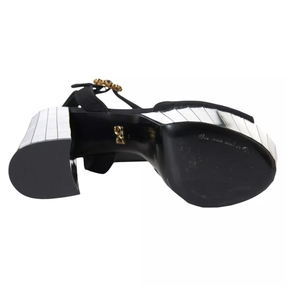 Dolce & Gabbana Black Mirror Heels Crystal Platform Sandals Shoes