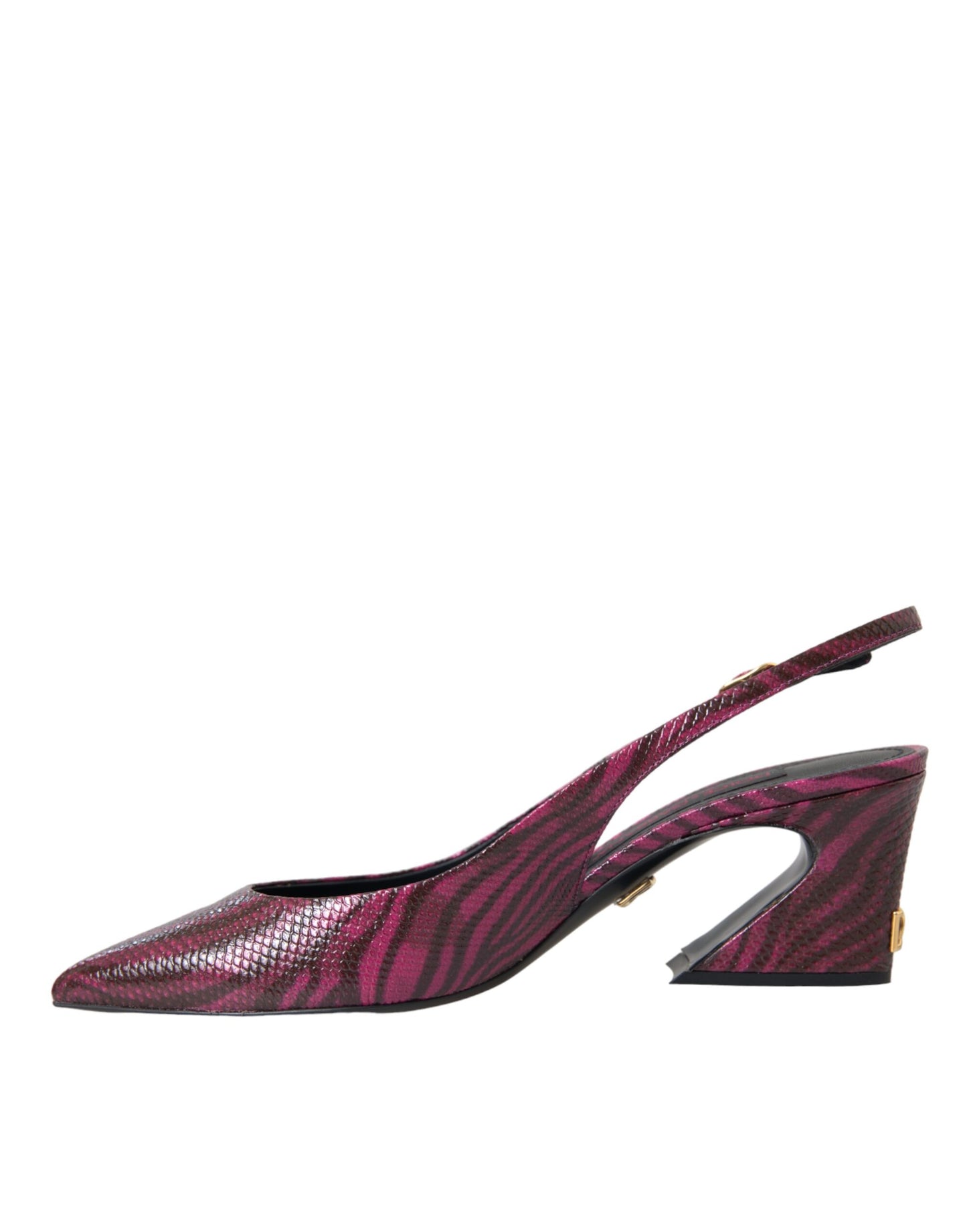 Dolce & Gabbana Maroon Zebra Leather Heels Slingbacks Shoes