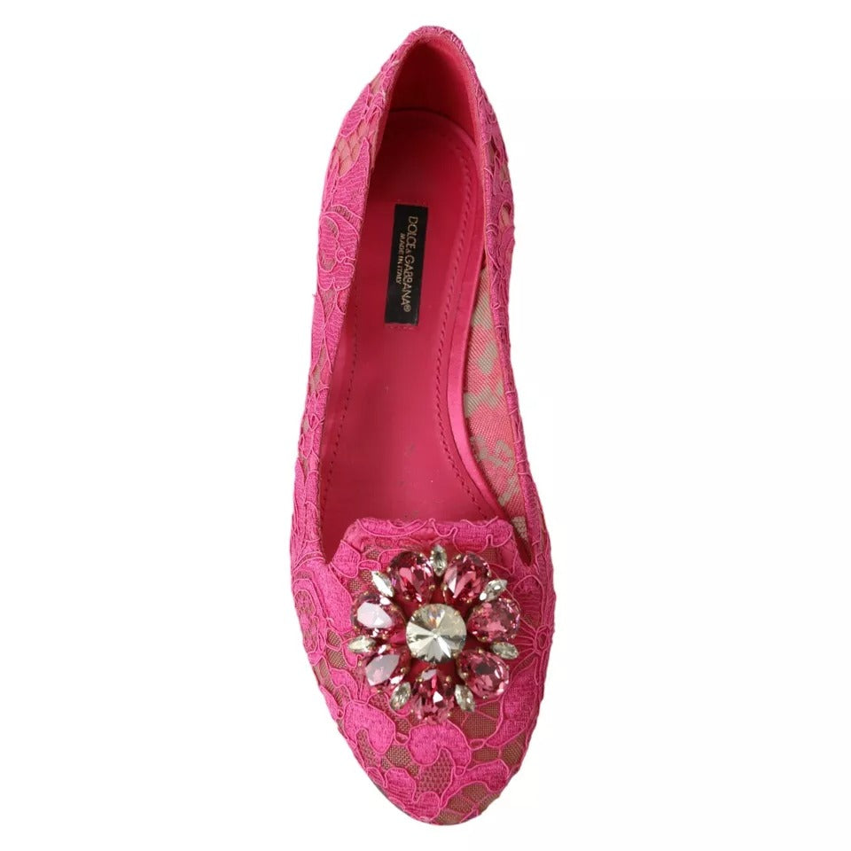 Dolce & Gabbana Pink Lace Crystal Ballet Loafers Shoes