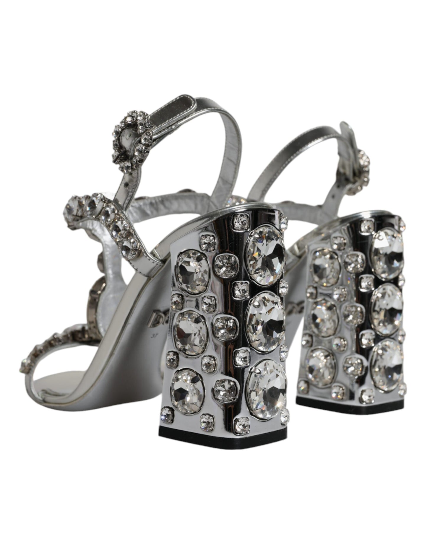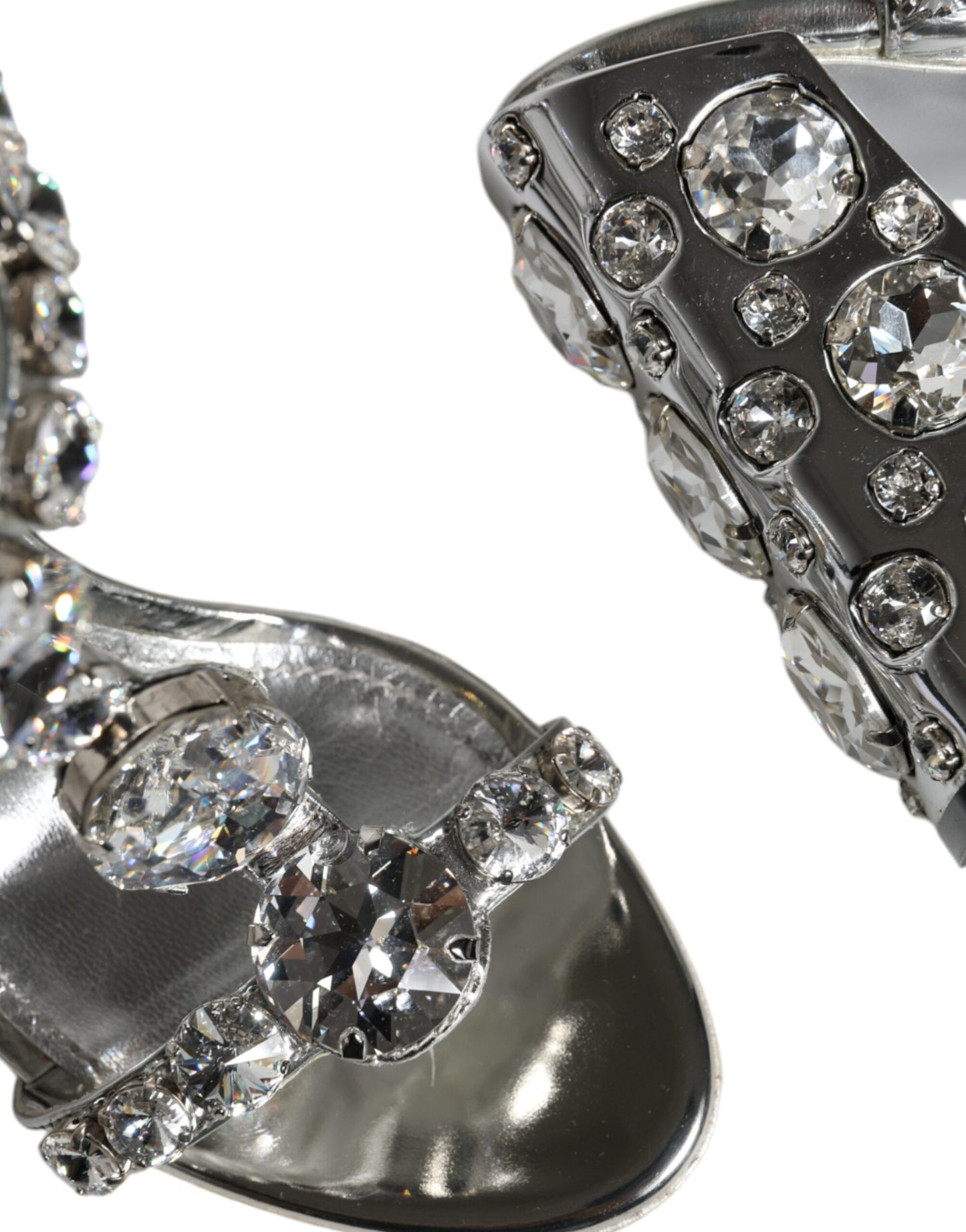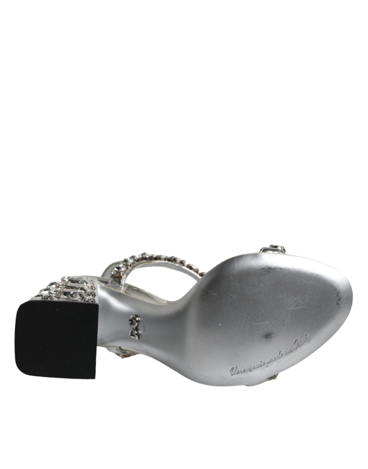 Dolce & Gabbana Silver Leather T-strap Crystal Sandals Shoes