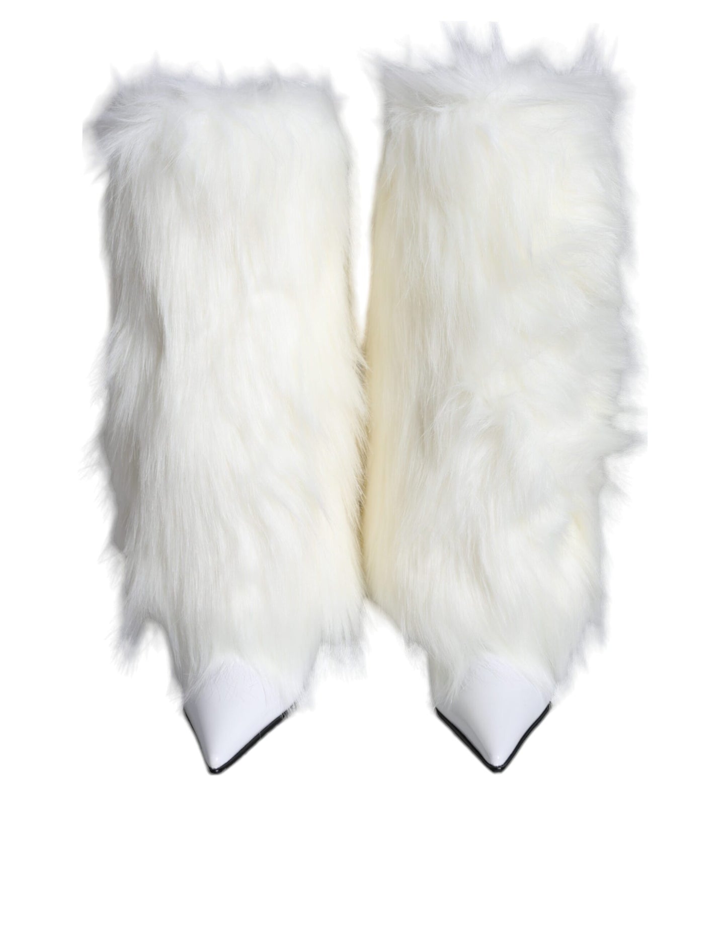 Dolce & Gabbana White Fur Leather Heels Mid Calf Boots Shoes