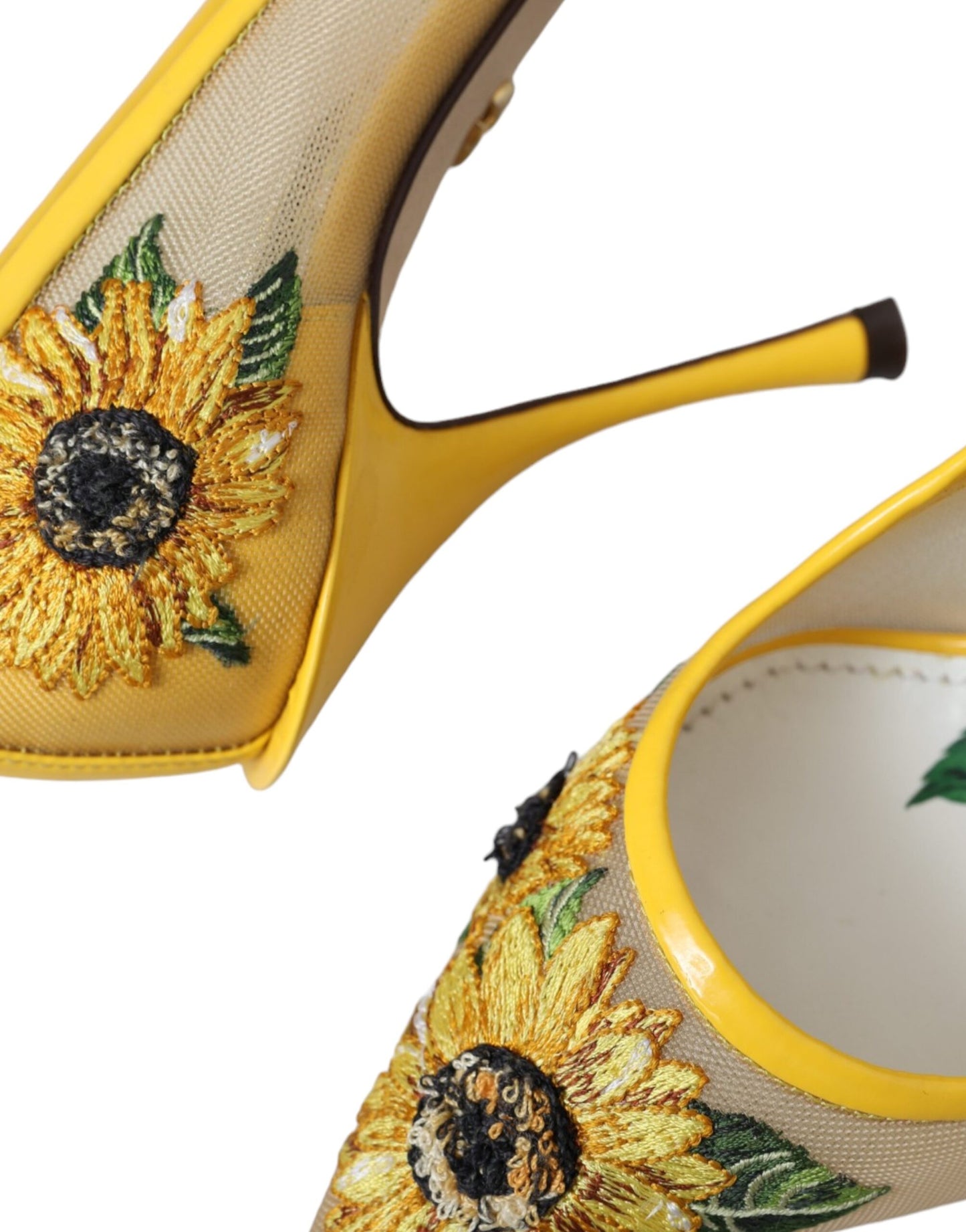Dolce & Gabbana Yellow Sunflower Mesh Heels Pumps Shoes