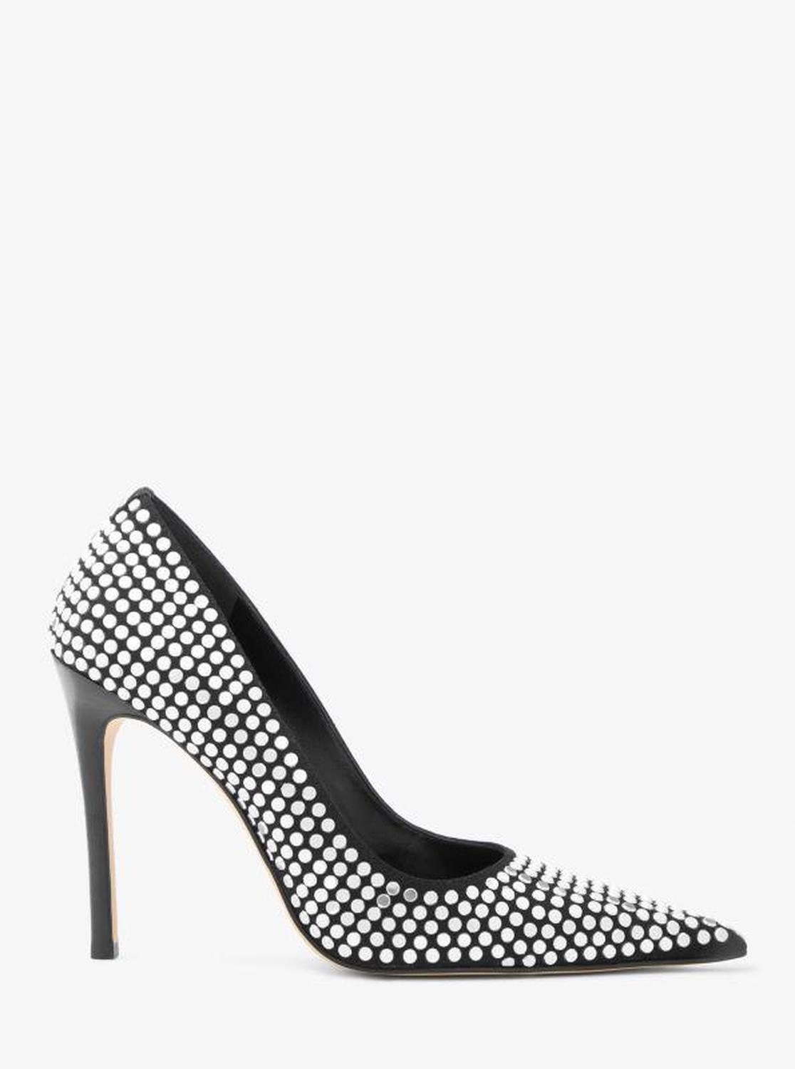 • Embellished with silver-tone studs, these glittering Elyse pumps are designed to turn up the heat. They’re made with a pointed toe and set on a sharp stacked stiletto heel. Whether you’re headed to the office or out at night, this statement-making pair is a wardrobe icon.