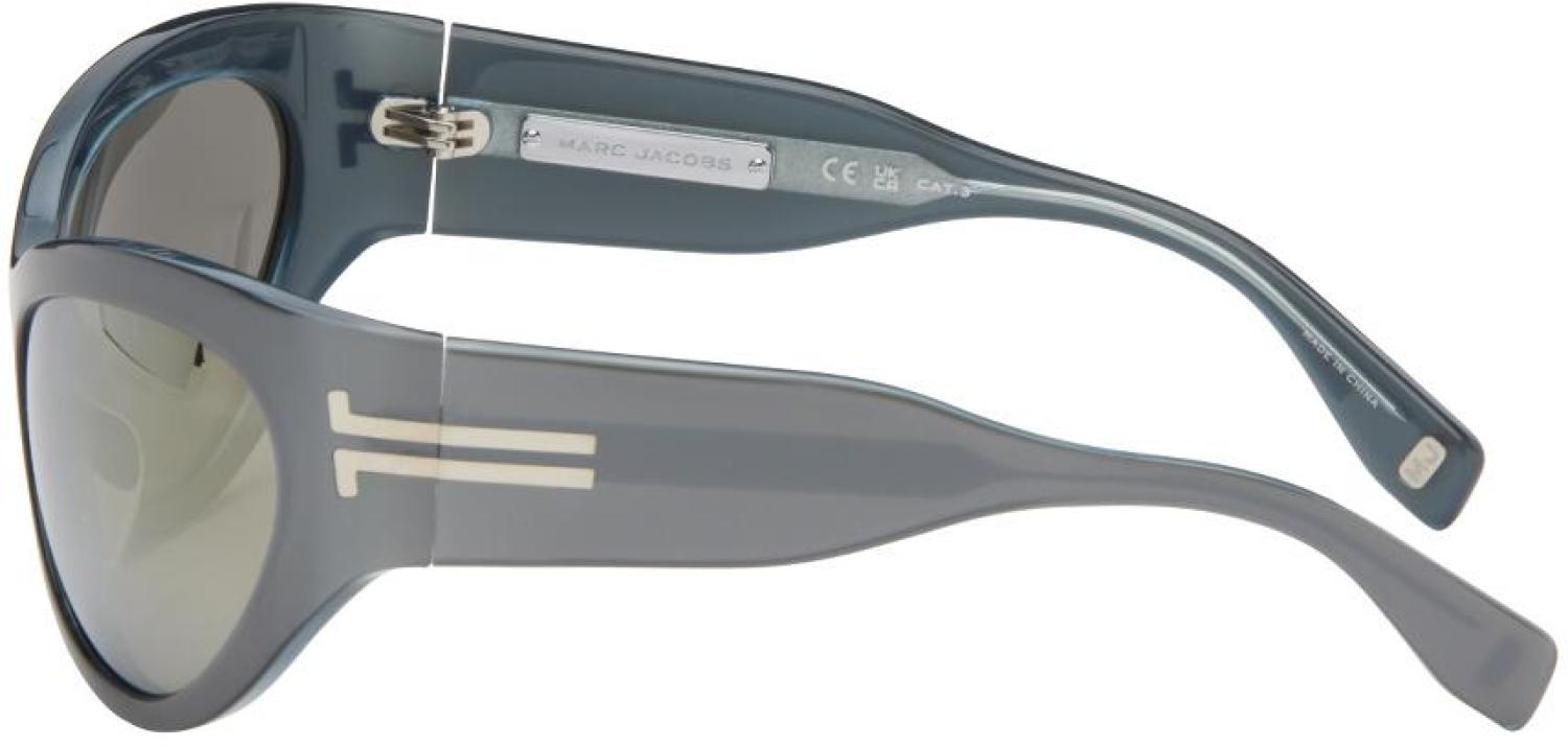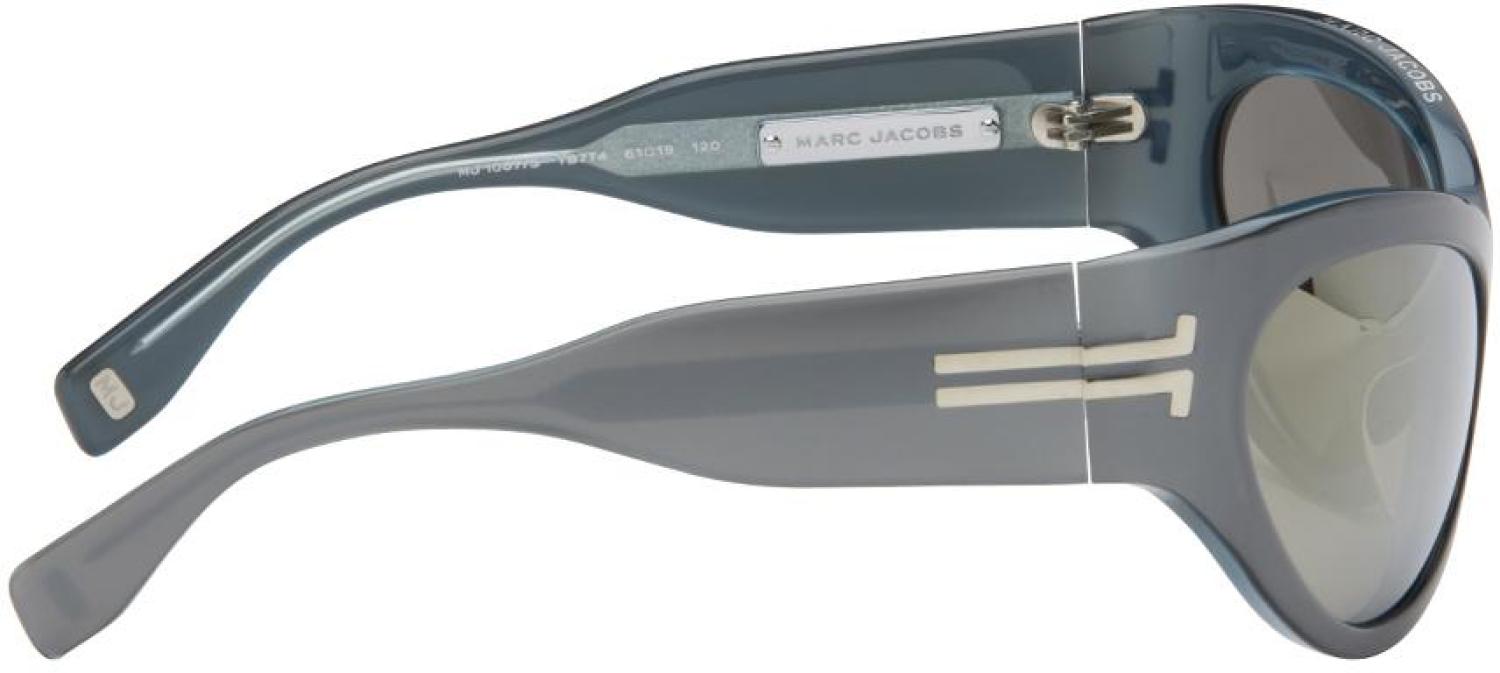 Marc Jacobs Gray 'The Icon' Wrapped Sunglasses Wraparound cat-eye acetate-frame sunglasses in gray. · Gray lenses · Integrated nose pads · Logo etched at top · Logo hardware at temples · Hardside case included · Size: 61.19 120 Supplier color: Silver Acetate. Made in China. 241190F005005