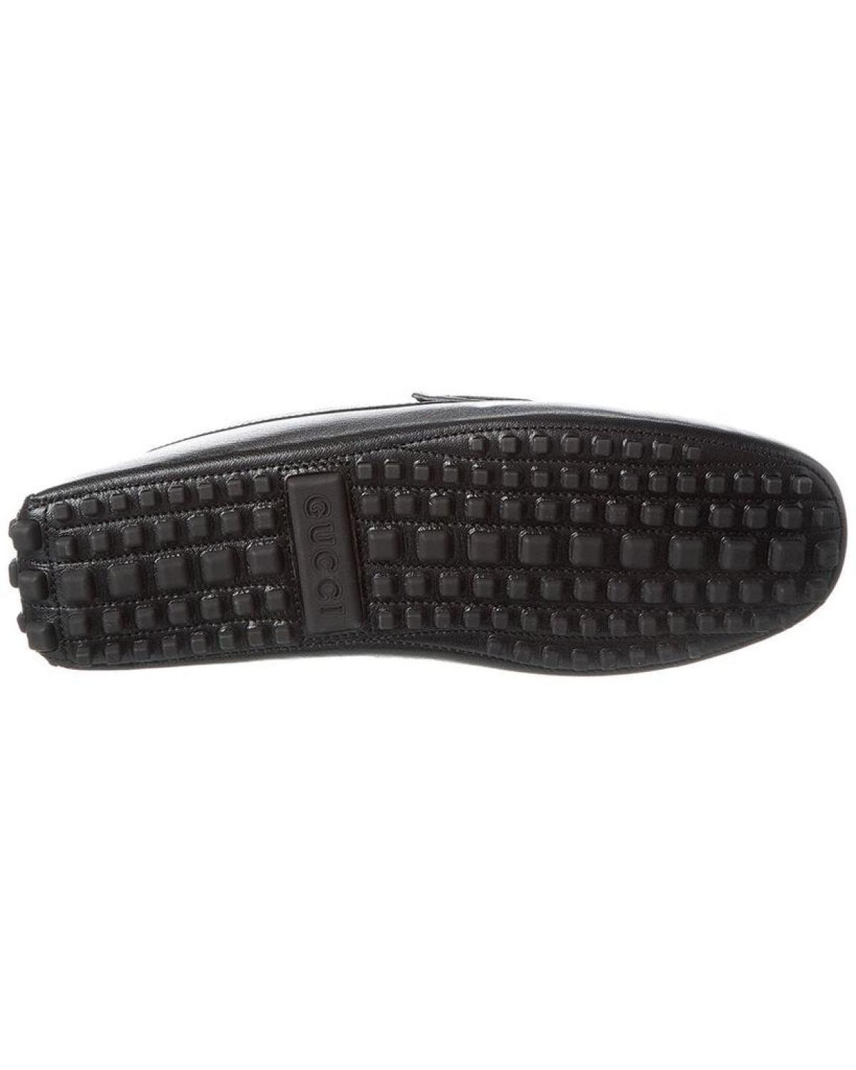 Elevate your style with the Gucci Horsebit Leather Loafer. Crafted in Italy, these black leather loafers feature light fine gold hardware with the iconic horsebit accent. The lightly padded leather insole provides all-day comfort, while the flexible leather sole with rubber pods offers added grip and durability. Known for its eclectic and coveted designs, Gucci redefines Italian luxury with each piece. Please note that size selections are in UK sizes, and we recommend referencing the size chart for US conversions. Based on feedback, this item typically runs large, so we suggest sizing down for the perfect fit. Rest assured that our products are 100% genuine, sourced from trusted independent suppliers to ensure authenticity. Step out in style with the Gucci Horsebit Leather Loafer and experience the timeless elegance and craftsmanship of this iconic brand.