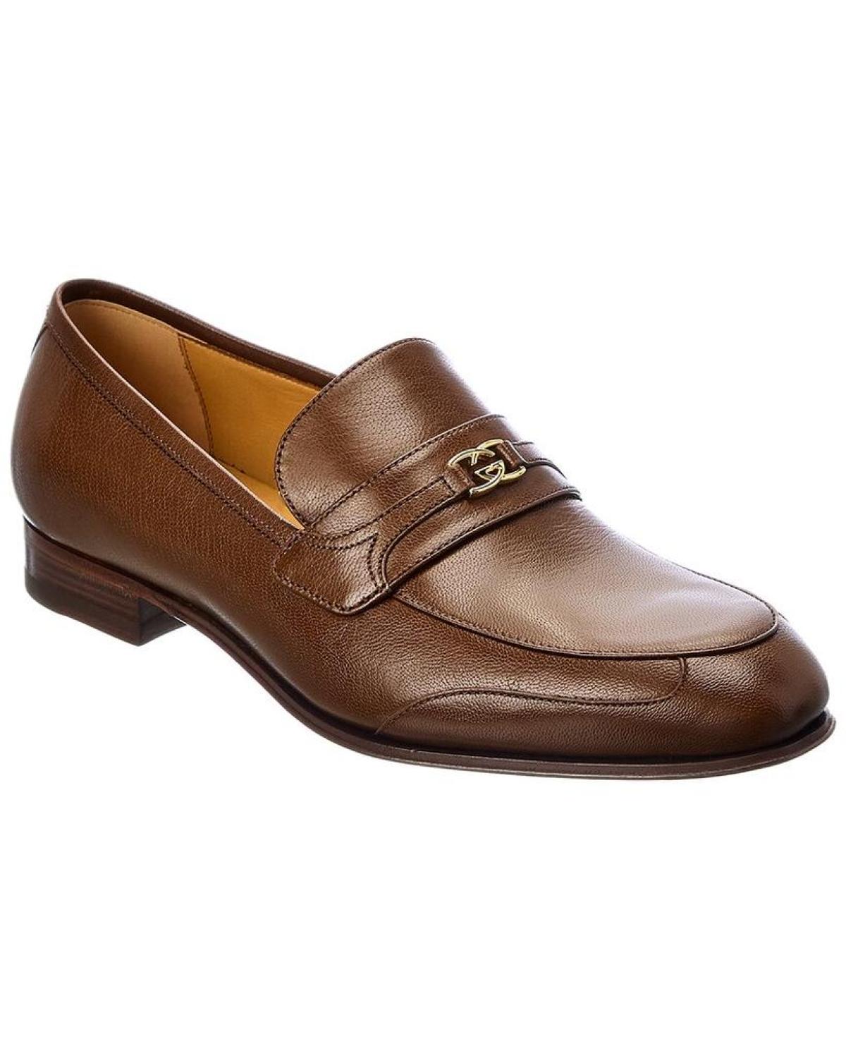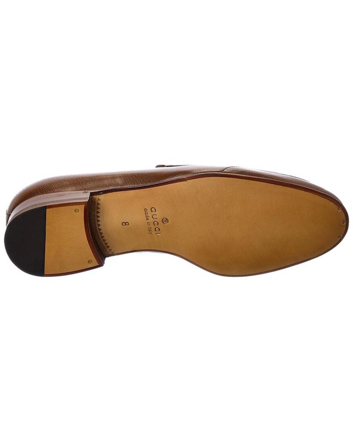 • Introducing the Gucci Leather Loafer, a timeless piece of luxury footwear for the modern man. Crafted with utmost care and precision, this loafer bears the prestigious Gucci brand name, ensuring unmatched quality and style.Made in Italy, this exquisite loafer showcases the impeccable craftsmanship that the Italian fashion house is renowned for. The rich brown leather and light fine gold hardware with an interlocking G logo accent make for a striking and sophisticated design.Comfort is not compromised with this Gucci Leather Loafer. The lightly padded leather insole provides cushioning, allowing you to walk with ease and confidence. The smooth leather sole offers durability and stability, ensuring long-lasting wear.With a sleek 1-inch heel, this loafer adds a touch of elevation and elegance to any outfit. Whether you're attending a formal event or simply want to elevate your everyday ensemble, these loafers are the perfect choice.Please note that all measurements provided are approximate and based on a size 8. Slight variations may occur. Size selections are in UK sizes, so please refer to the size chart for US conversions.At our store, authenticity is our priority. While we occasionally source merchandise from trusted independent suppliers, we guarantee that all our products are 100% genuine. Rest assured that every product sold on our site is backed by our authenticity promise.Elevate your style with the Gucci Leather Loafer. Experience Italian luxury redefined with this coveted piece of footwear. Shop now and join the global community that adores and appreciates the eclectic creations of Gucci.