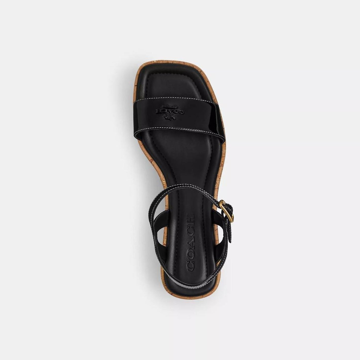 Leather upper Man-made leather lining and footbed Rubber outsole Slip on 3 heel Style No. CBM83 | Coach Outlet Hale Cork Sandal - Black, Size - 9