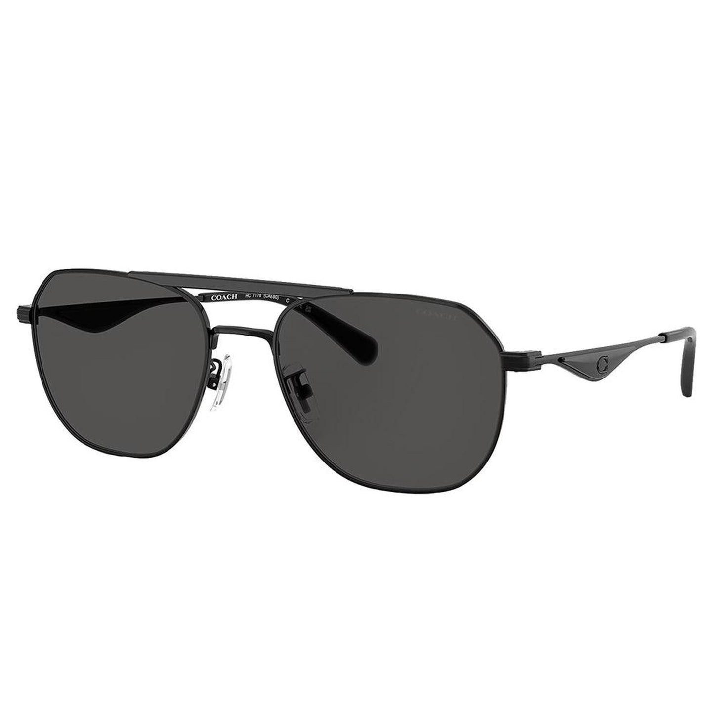 Coach HC 7178 939387 57mm Unisex Satin Black/Black Grey Lens SunglassesFrame Color - Satin Black/BlackFrame Style - PilotFrame Material - MetalLens Color - Grey LensProtection - UV ProtectedIncludes - Coach case, cloth and paperwork *may vary from pictureSize - Lens 57 mm x bridge 19 mm x arms 150 mm All measurements may vary