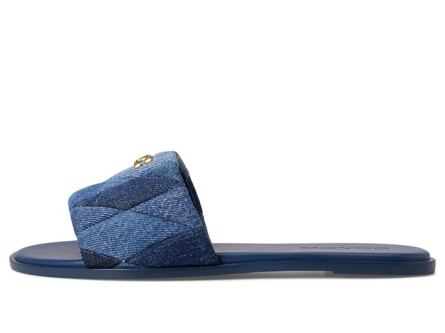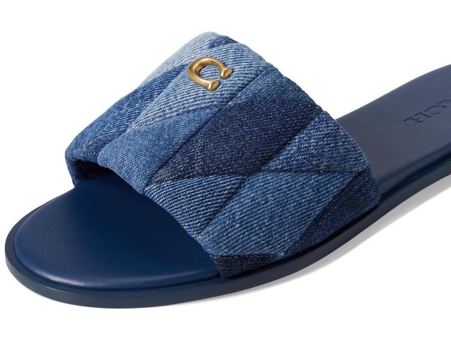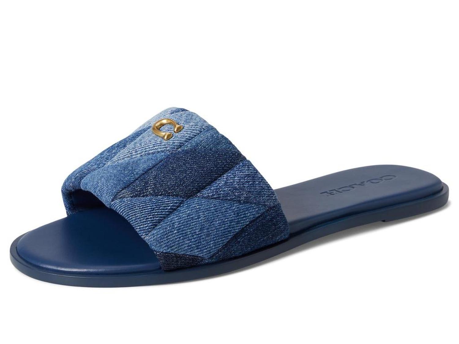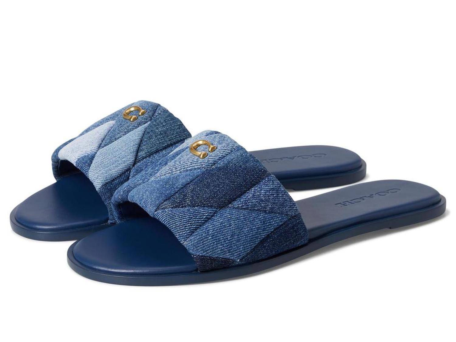 Crafted to perfection, the COACH® Holly Sandals with Quilting are designed to offer both durability and a trendy touch to your look. The slip-on footwear features denim upper construction and rounded open toe silhouette.