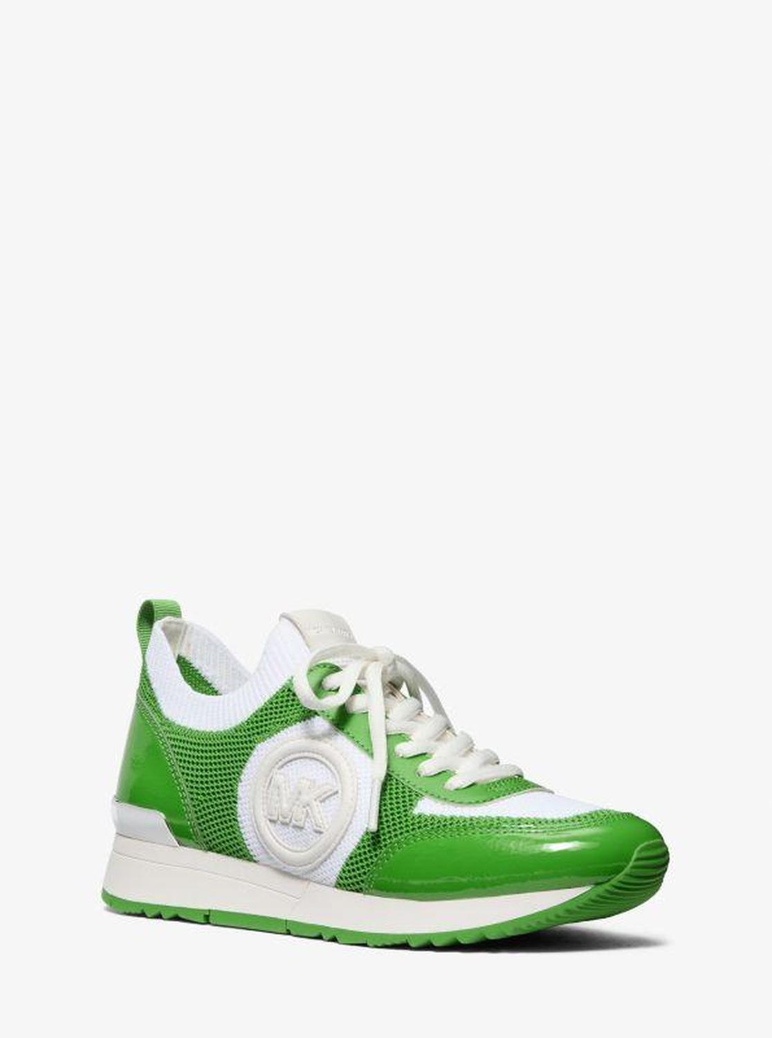 • Your weekend go-to, with a twist: our Jenkins trainer features a modern combination of stretch knit and ribbed panels. A two-tone finish and patent accents add an eye-catching twist, while a rubberized sole delivers comfort and support. Reach for this sporty pair when running errands.