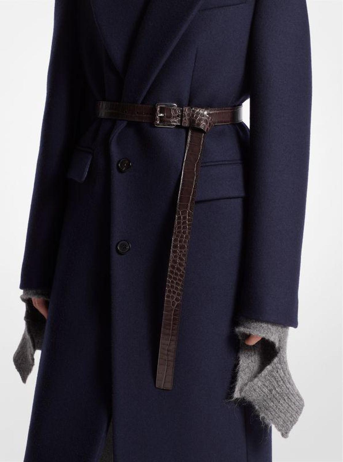 The Jodi belt is a notable accessory seen throughout the Fall/Winter 2024 runway collection. Designed to be worn with fluid trousers, shorts and sharply tailored coats, this elongated style is finely crafted in Italy from crocodile embossed premium leather and punctuated with a polished square-shaped buckle. It’s available in two neutral colorways for endless styling versatility. • Belt • Crocodile embossed leather • 100% leather • Silver-tone hardware • Buckle fastening • Made in Italy • XS = 31.5”/80 cm • S = 33.5”/85 cm • M = 35.5”/90 cm • L = 37.5”/95 cm • Belt • Crocodile embossed leather • 100% leather • Silver-tone hardware • Buckle fastening • Made in Italy • XS = 31.5”/80 cm • S = 33.5”/85 cm • M = 35.5”/90 cm • L = 37.5”/95 cm