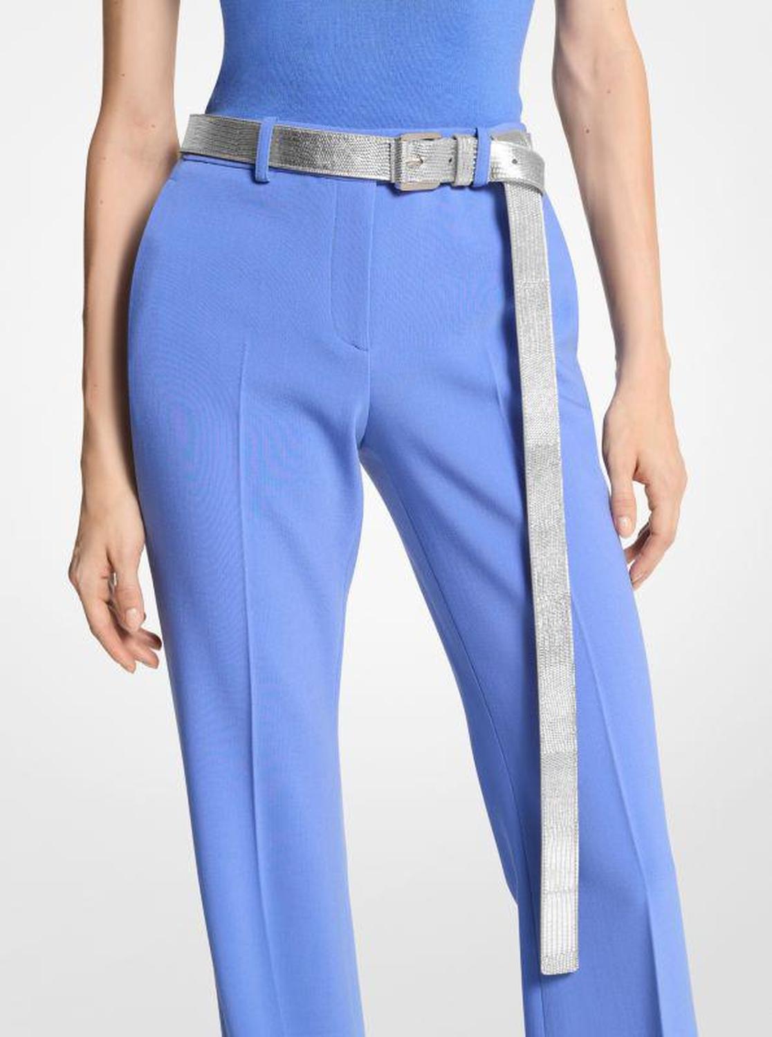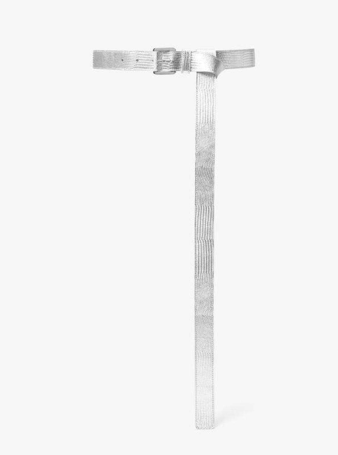 The Jodi belt is a notable accessory seen throughout the Fall/Winter 2024 runway collection. Designed to be worn with sharply tailored trousers and more, this elongated style is finely crafted in Italy from lizard-embossed leather and punctuated with a polished square-shaped buckle. The metallic finish will beautifully complement the season’s azure-hued separates. • Belt • Metallic lizard embossed leather • 100% leather • Silver-tone hardware • Buckle fastening • Made in Italy • XS = 31.5”/80 cm • S = 33.5”/85 cm • M = 35.5”/90 cm • L = 37.5”/95 cm • Belt • Metallic lizard embossed leather • 100% leather • Silver-tone hardware • Buckle fastening • Made in Italy • XS = 31.5”/80 cm • S = 33.5”/85 cm • M = 35.5”/90 cm • L = 37.5”/95 cm