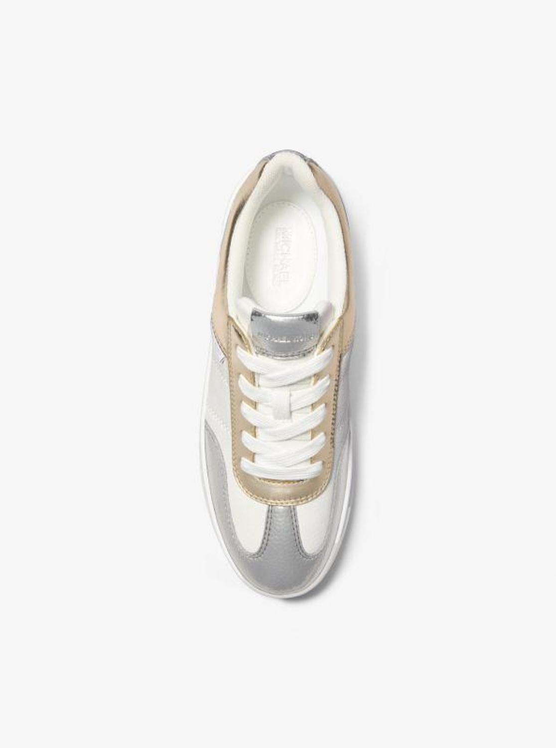 Michael Kors—defining modern glamour since 1981. • Sneaker • Polyurethane blend/metallic • Lining: polyester • Sole: rubber • Round toe • Lace-up fastening • Platform height: 1.75” • Imported • Sneaker • Polyurethane blend/metallic • Lining: polyester • Sole: rubber • Round toe • Lace-up fastening • Platform height: 1.75” • Imported