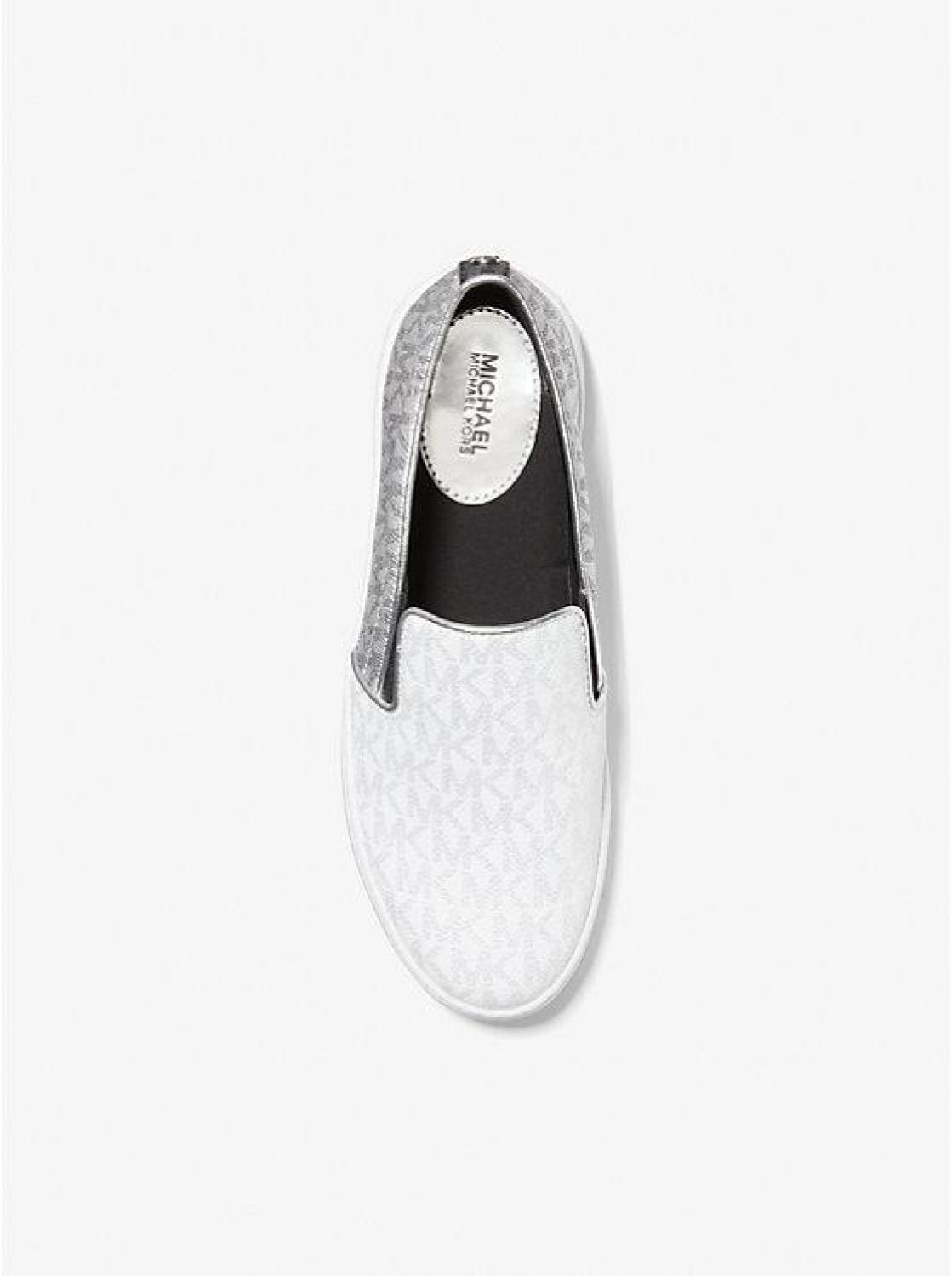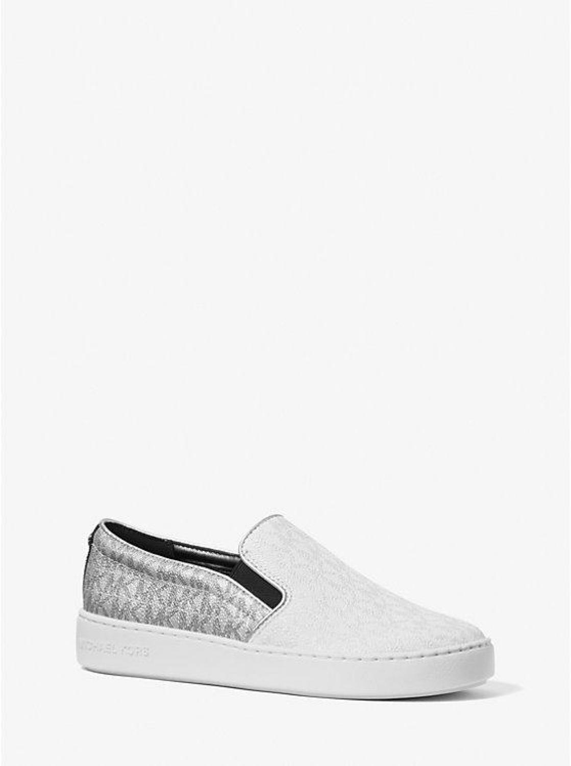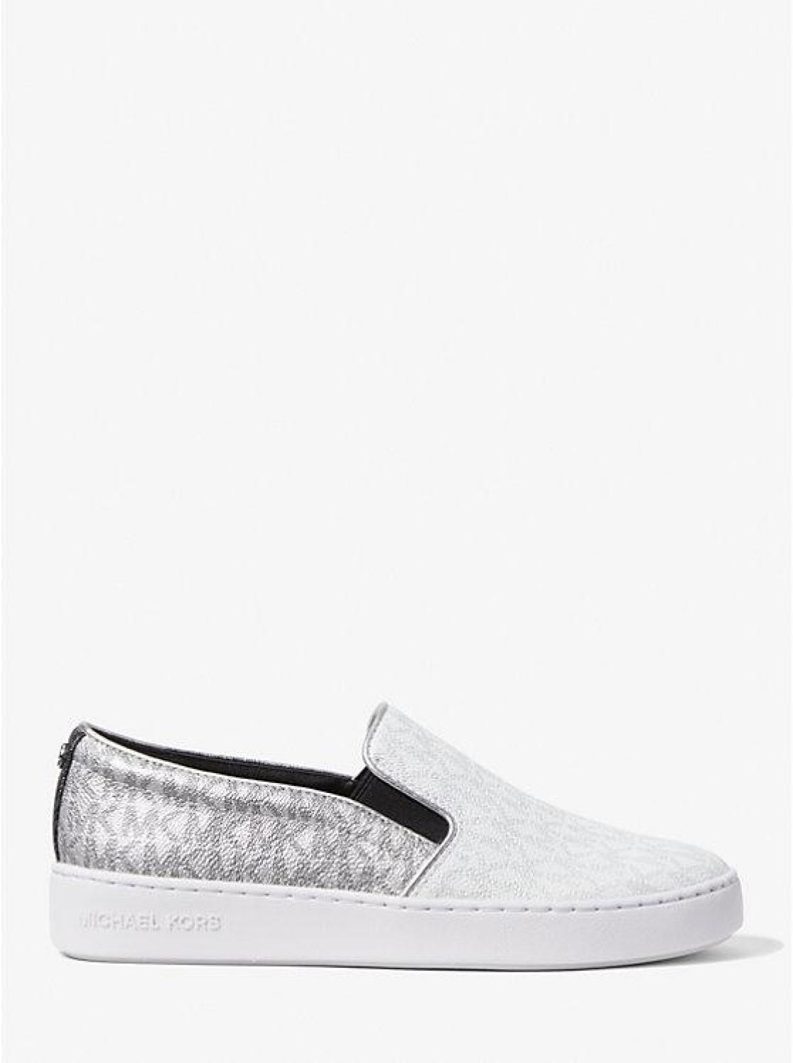 • Say hello to Keaton. Made from Signature Logo-print canvas with a color-blocked finish, these metallic slip-on sneakers are perfect for any off-duty ensemble. Wear them with denim, dresses and everything in between.