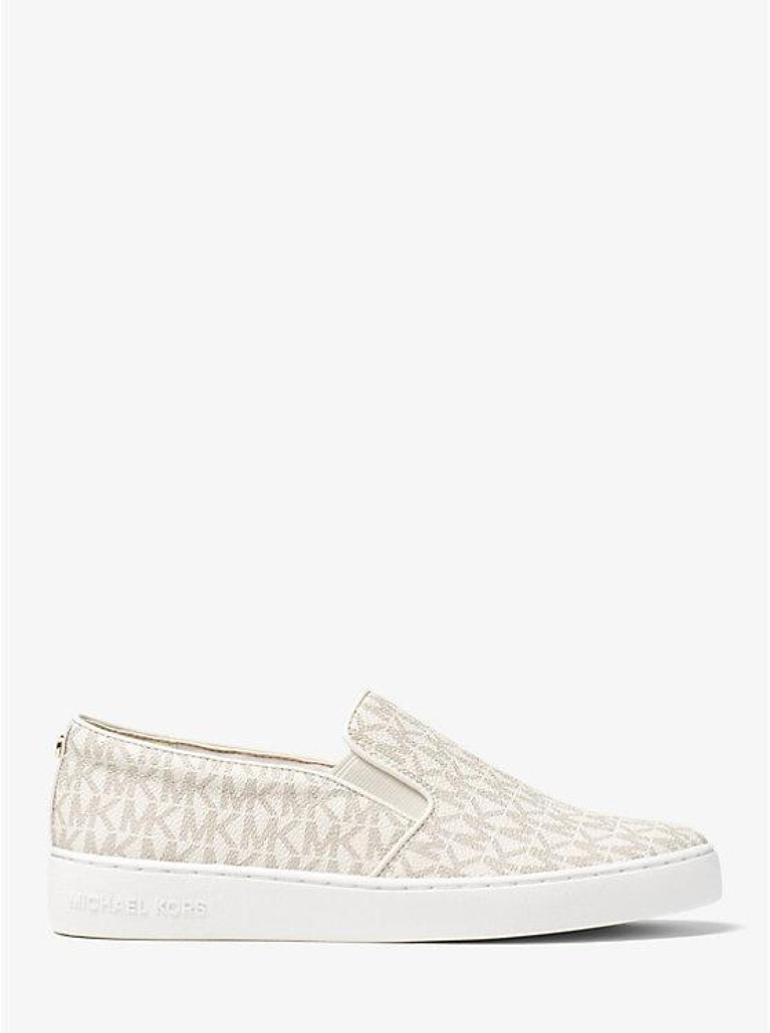 • Our sleek slip-ons go from day to night and work to weekend without fuss. We finished this sneaker in our signature logo print and added a supportive sole for easy wear. Team them with a feminine skirt for a casual-cool pairing.