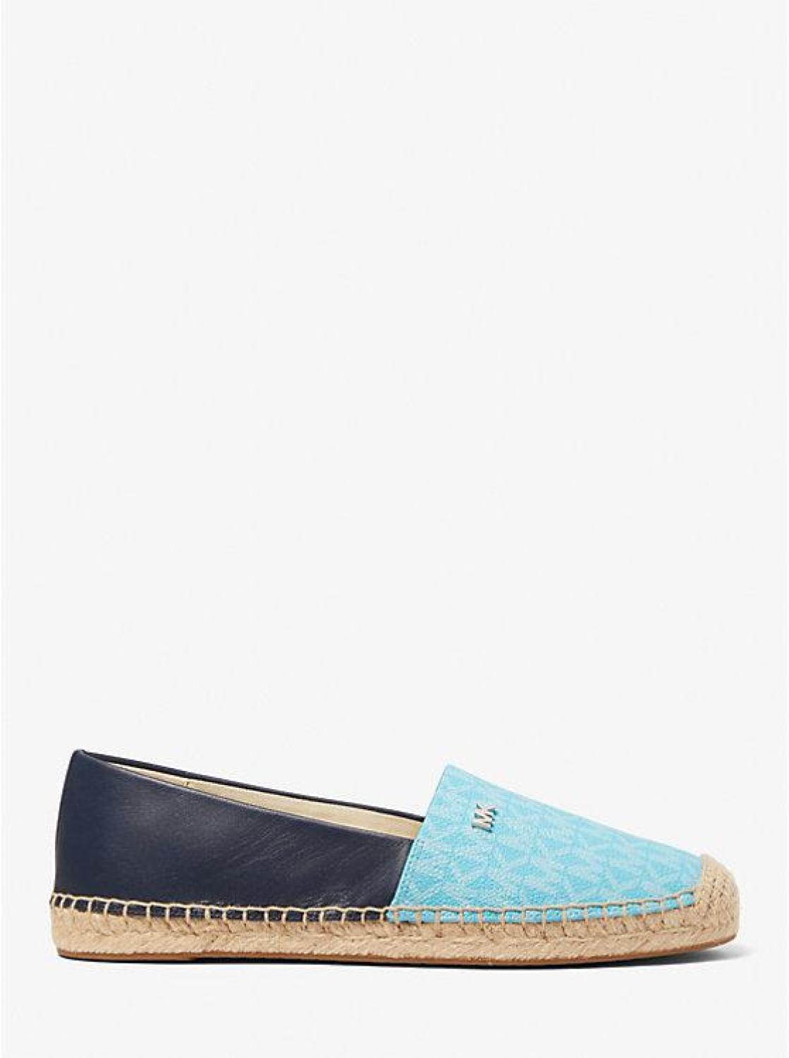 Crafted from supple leather and Signature-print canvas, the Kendrick espadrille features a tactile jute trim and understated MK hardware for a polished finish. Consider this warm-weather style your go-to on days that require stylish ease. • Espadrille • Logo-print canvas/leather • 100% leather • Lining: cotton • Sole: rubber • Almond toe • Slip on • Imported • Espadrille • Logo-print canvas/leather • 100% leather • Lining: cotton • Sole: rubber • Almond toe • Slip on • Imported