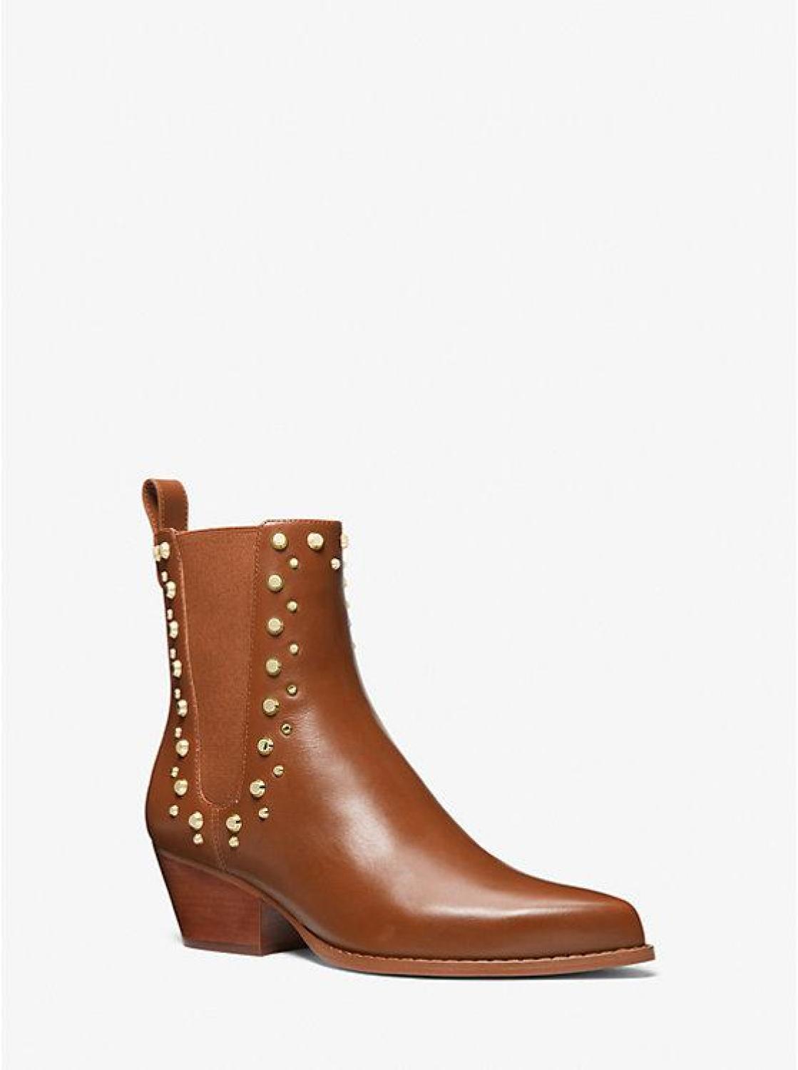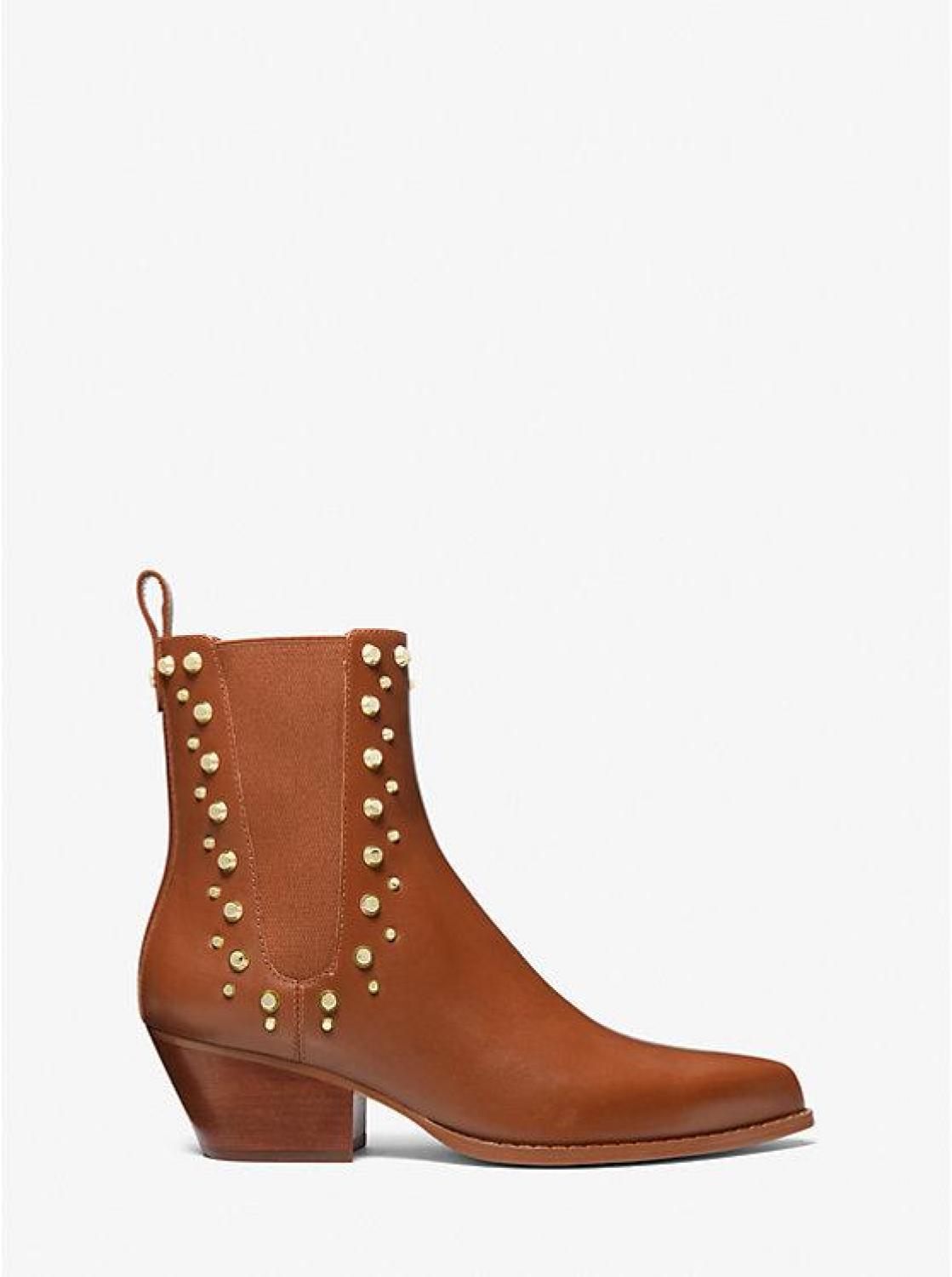 A western-inspired boot with downtown edge, the coveted Kinlee boot will instantly amp up any look. Crafted from supple leather accented with polished Astor studs, this effortlessly cool pair is designed with a pointed toe and set on a stacked heel for a relaxed yet refined finish. Featuring stretch-knit side panels and a back pull tab for easy wear, they’re sure to be a day-to-night favorite for years to come. Ankle boot Leather 100% leather Lining: polyester Sole: rubber Almond toe Slip on Heel height: 2" Heel type: stacked Imported Ankle boot Leather 100% leather Lining: polyester Sole: rubber Almond toe Slip on Heel height: 2" Heel type: stacked Imported