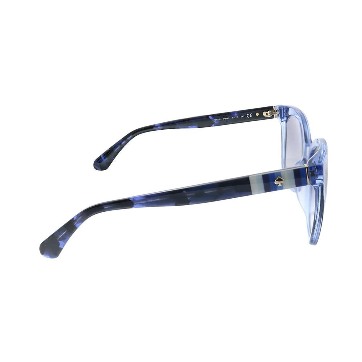 Kate Spade KS Kiya PJP Womens Crystal Blue Silver Mirror Lens SunglassesFrame Color - Crystal BlueFrame Style - Cat-EyeFrame Material - PlasticLens Color - Silver Mirror LensProtection - UV ProtectedIncludes - Kate Spade box, case, cloth and paperwork *may vary from pictureSize - Lens 53 mm x bridge 19 mm x arms 140 mm All measurements may vary